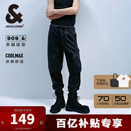 杰克琼斯男装牛仔裤子春新款酷爽干适潮流束脚裤中灰九分裤男裤