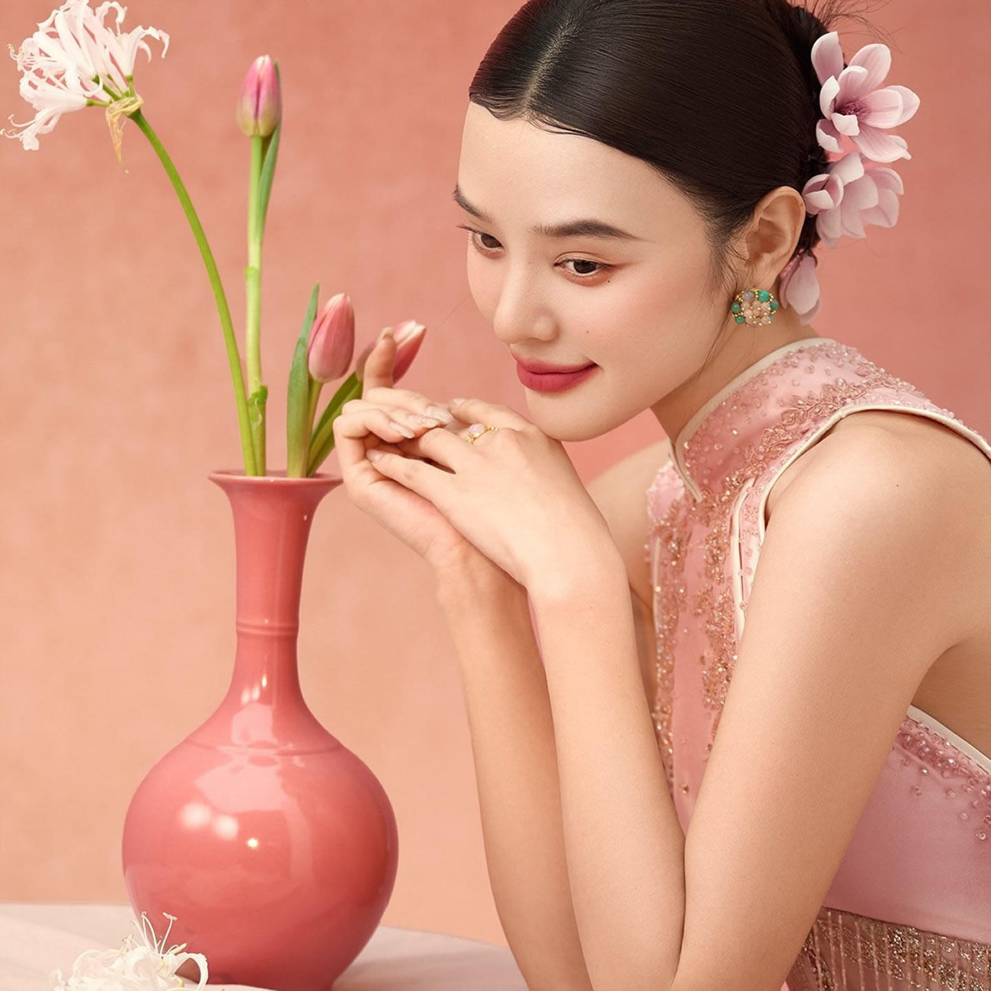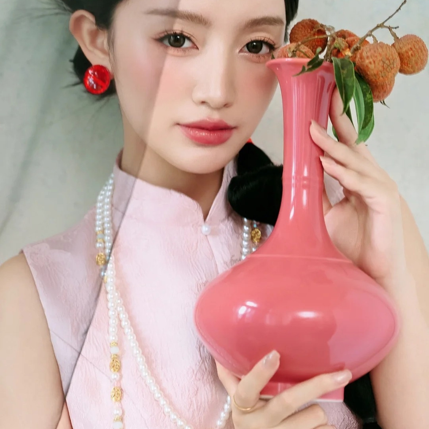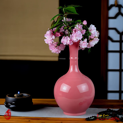 景德镇颜色釉陶瓷粉红色花瓶高颈瓶新中式摆件客厅桌面插花器花瓶