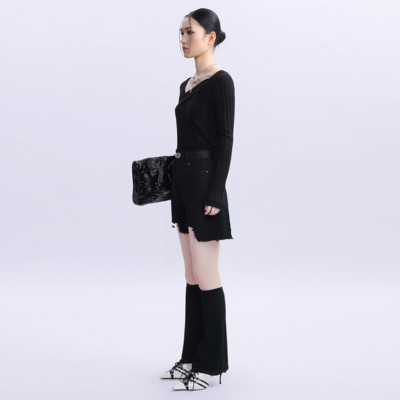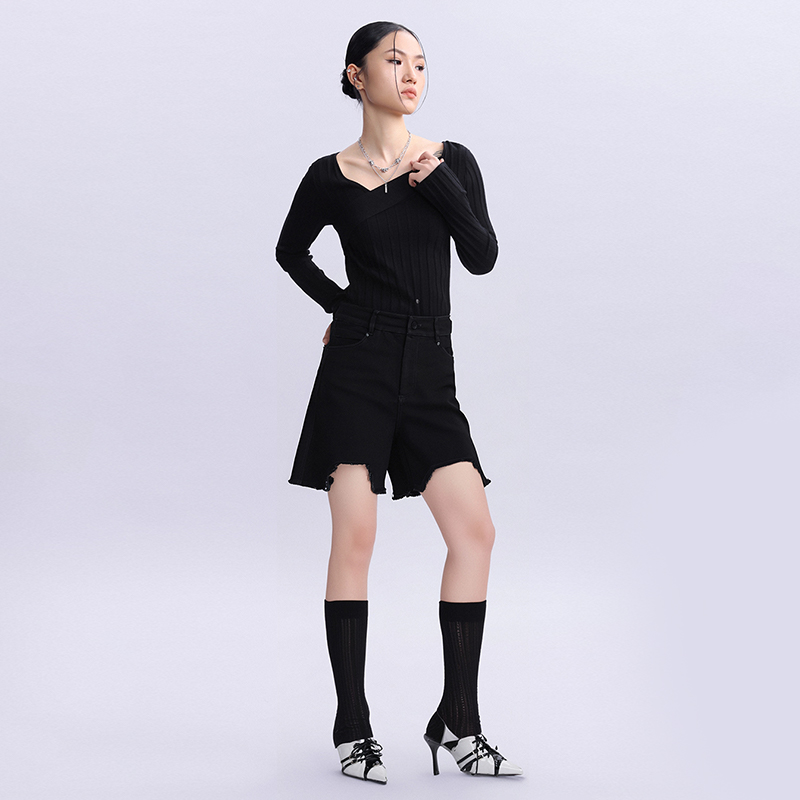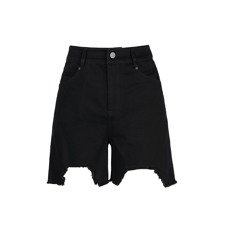 La pargay牛仔中裤女2025春夏新款黑色辣妹热裤个性设计高腰短裤