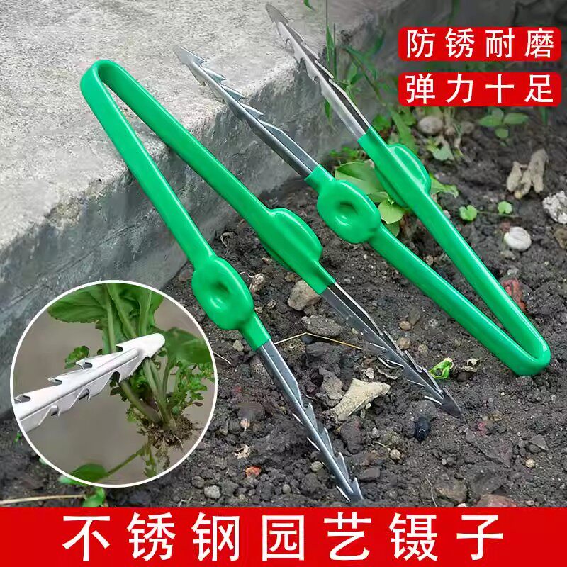 园艺工具镊子不锈钢拔草拔苗拾物夹子种花家用种菜取物夹种子农用