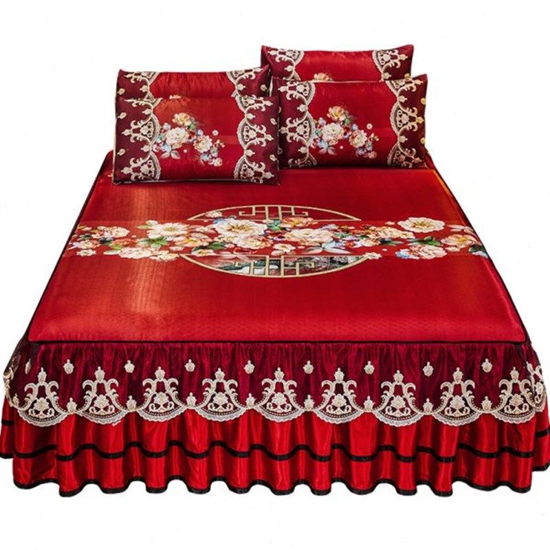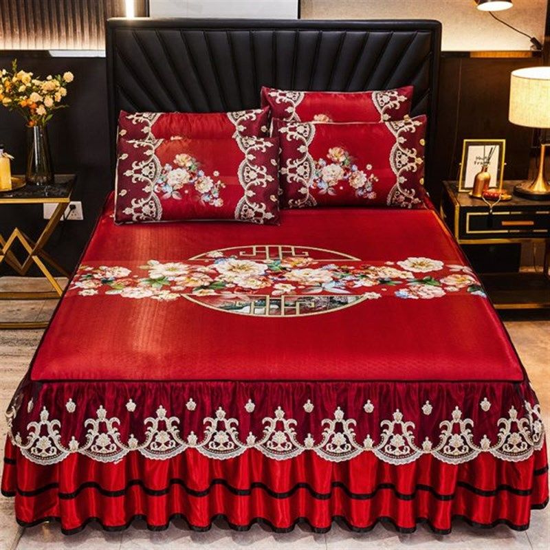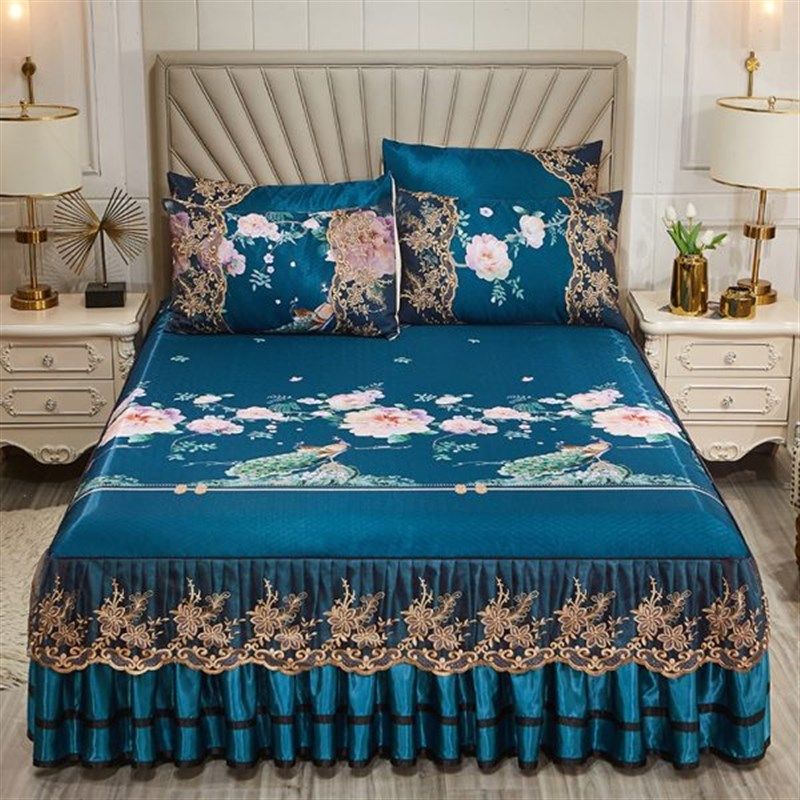 夏季冰丝凉席1.8m床裙式床罩冰丝席三件套可水洗凉感床单双人软席