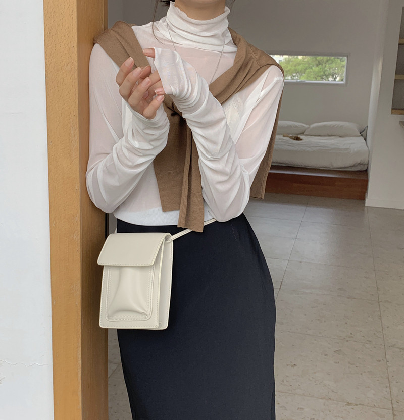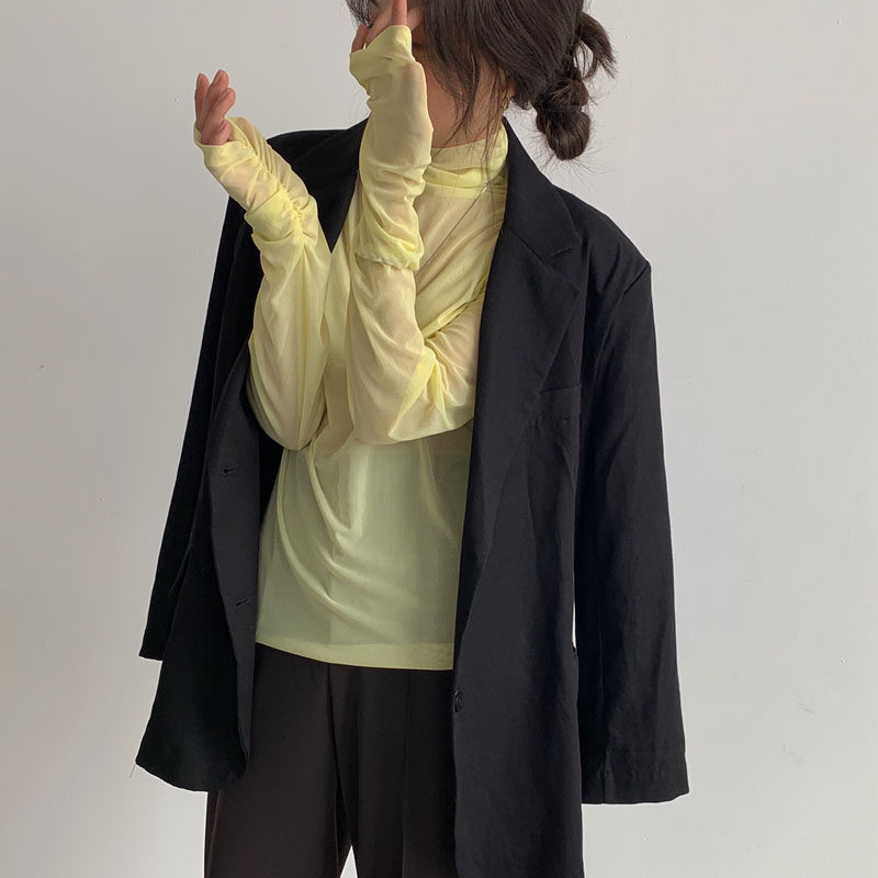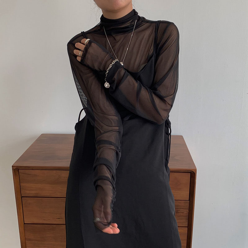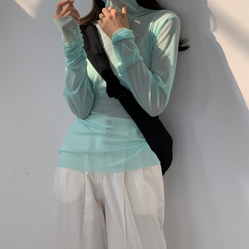 蕾丝高领打底衫内搭女春夏堆堆领防晒长袖百搭网纱上衣