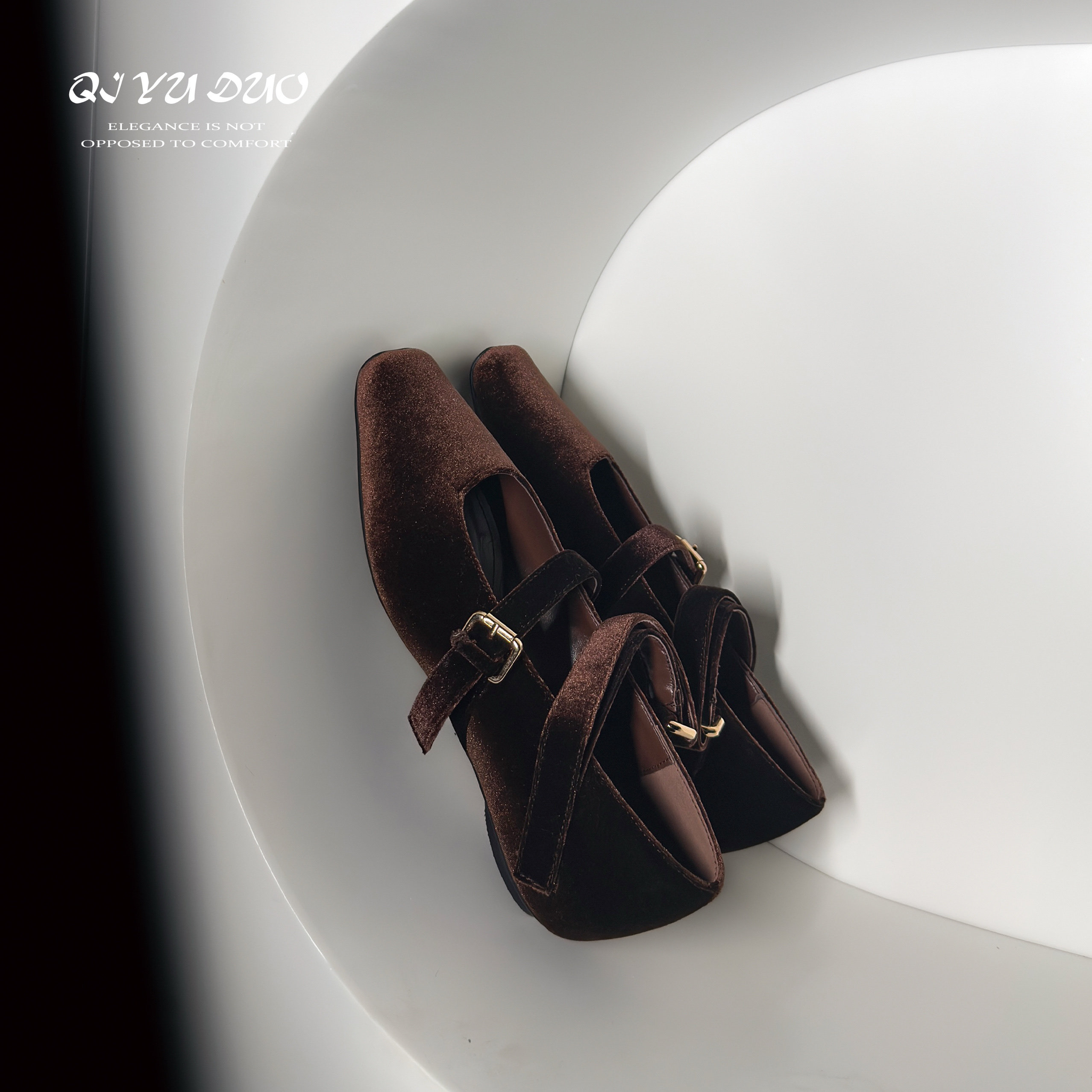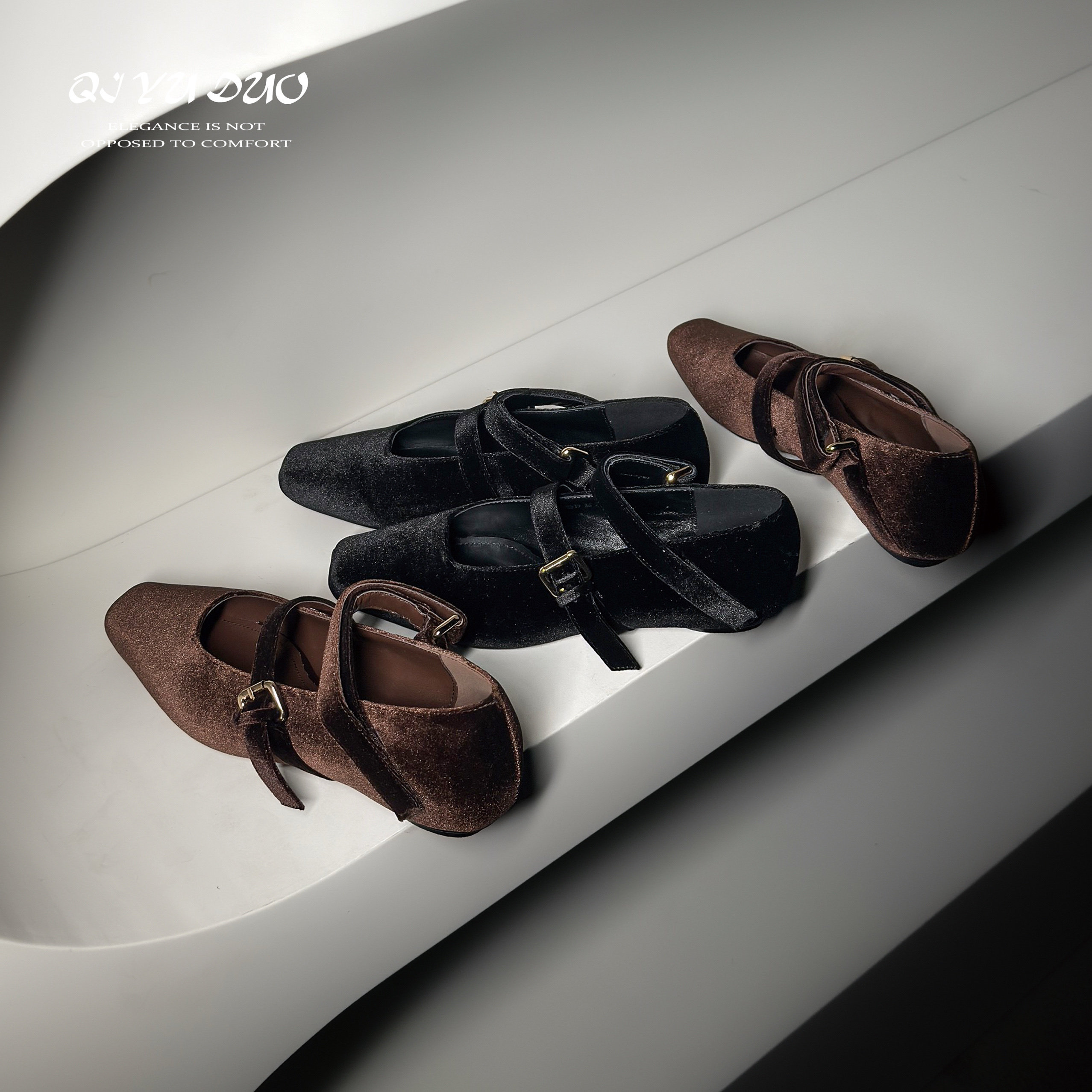【七与多】3cm/小众内增高玛丽珍鞋女方头复古芭蕾舞平底浅口单鞋