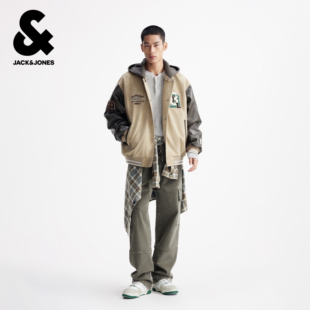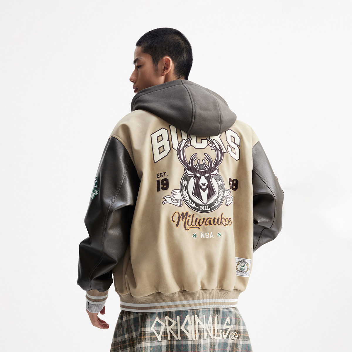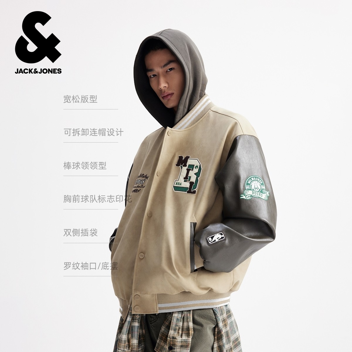 【商场爆款】杰克琼斯男装NBA联名雄鹿队男冬季棉衣连帽225409022