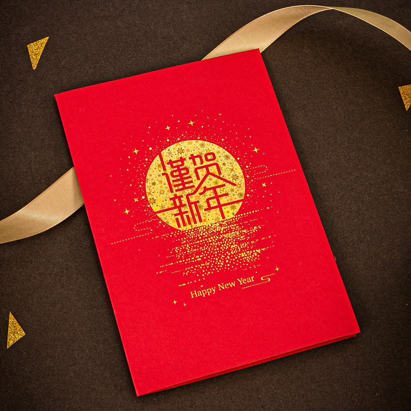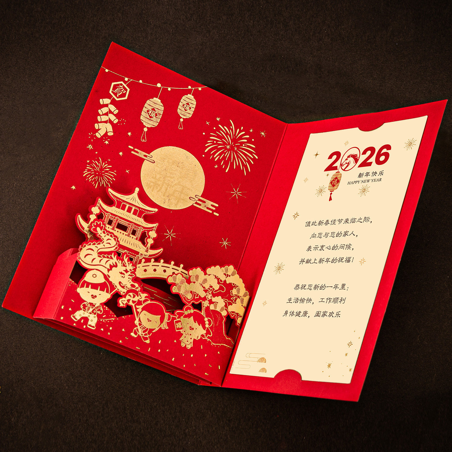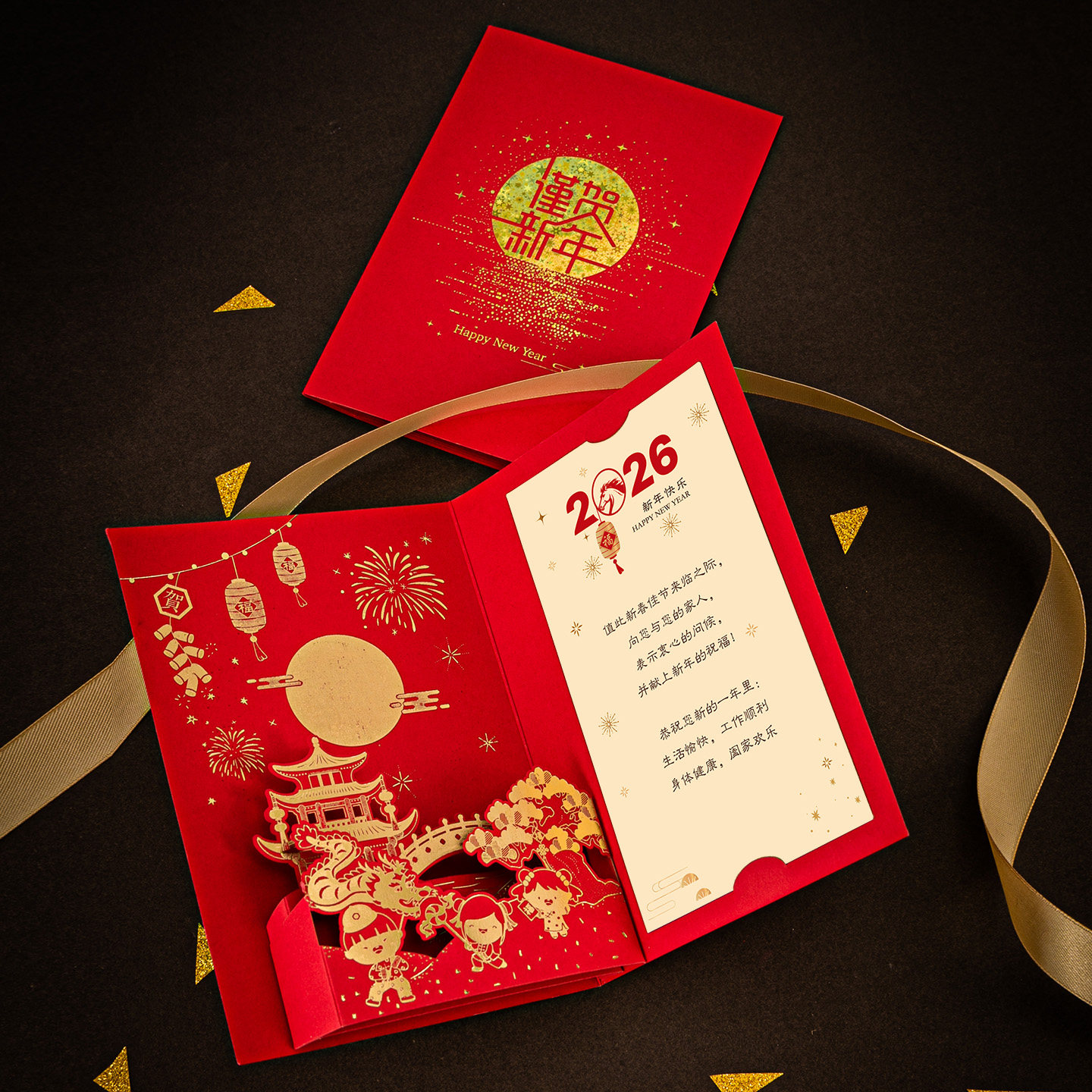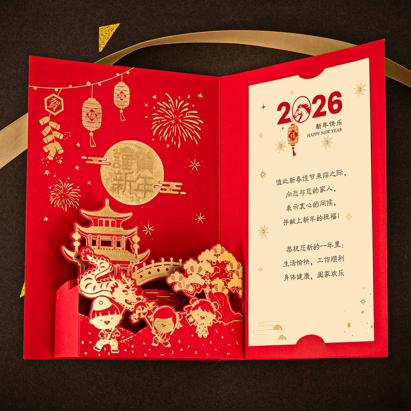 新年贺卡2026马年3D立体定制过年公司印刷logo送员工客户卡片信封