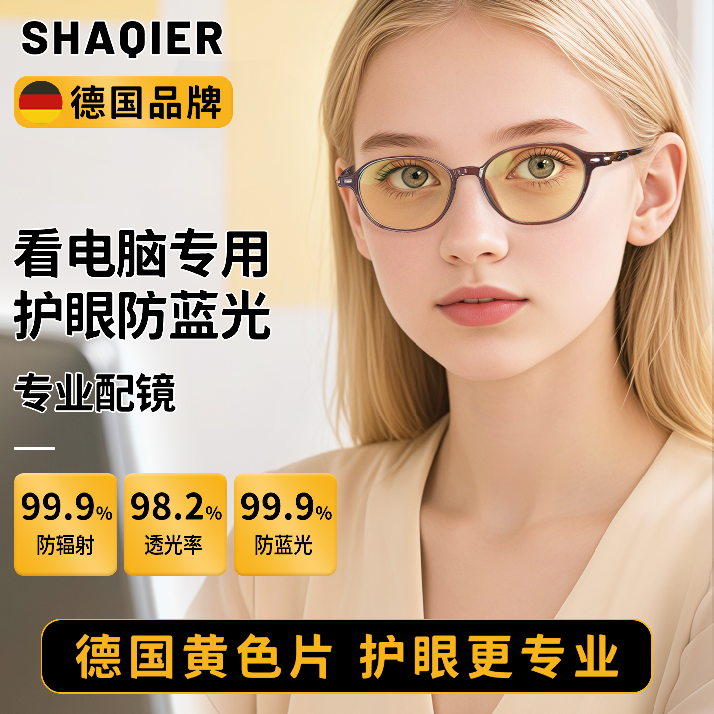 德国平光镜眼镜女护眼无度数抗辐射疲劳直播看手机防蓝光变色近视