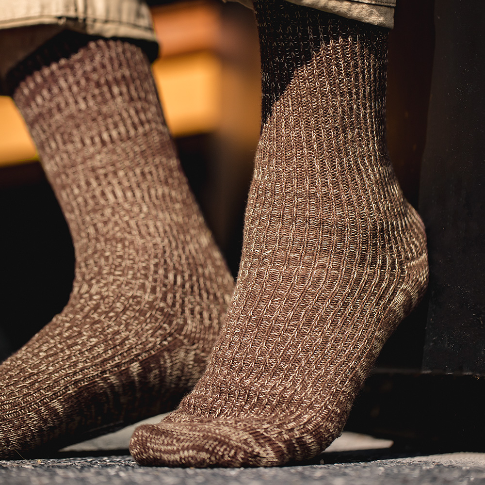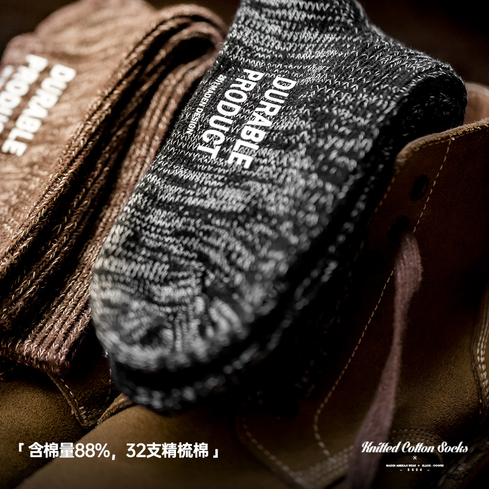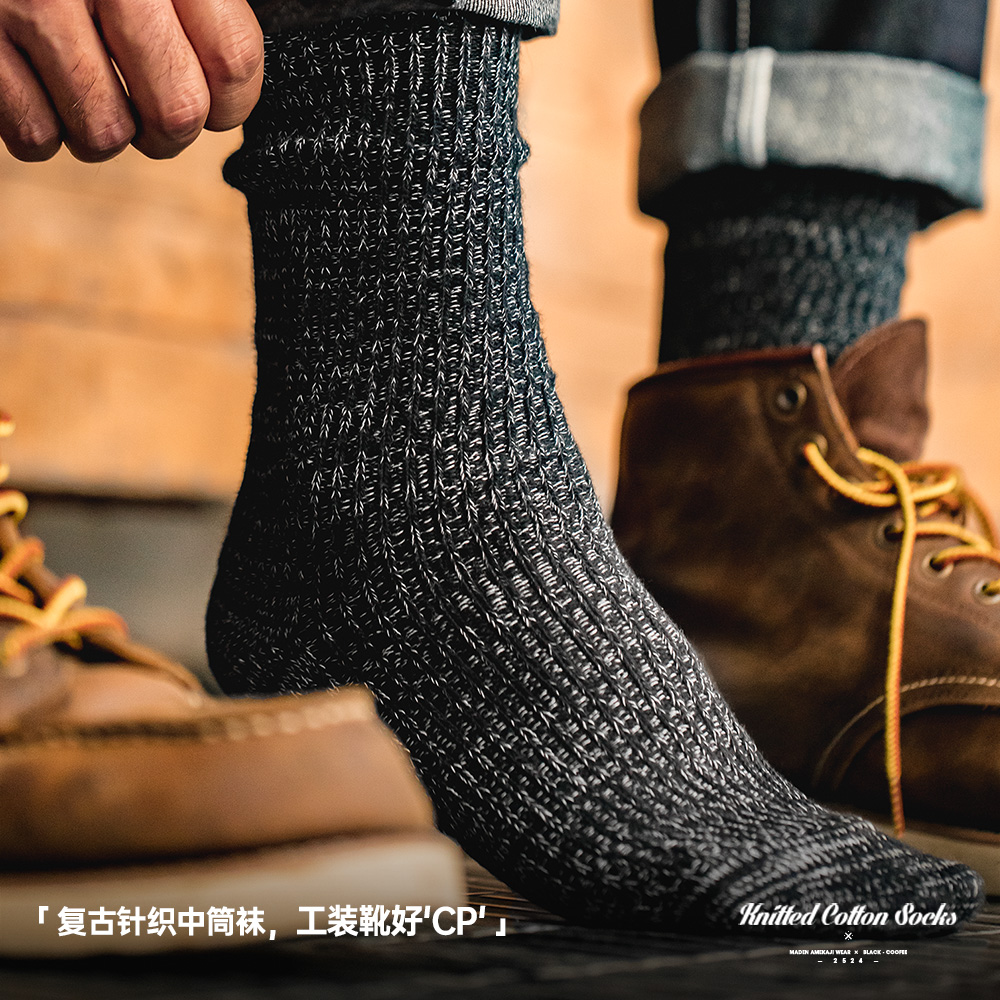 马登工装 美式复古粗线针织中筒袜加厚杂色阿美咔叽长袜子男秋冬
