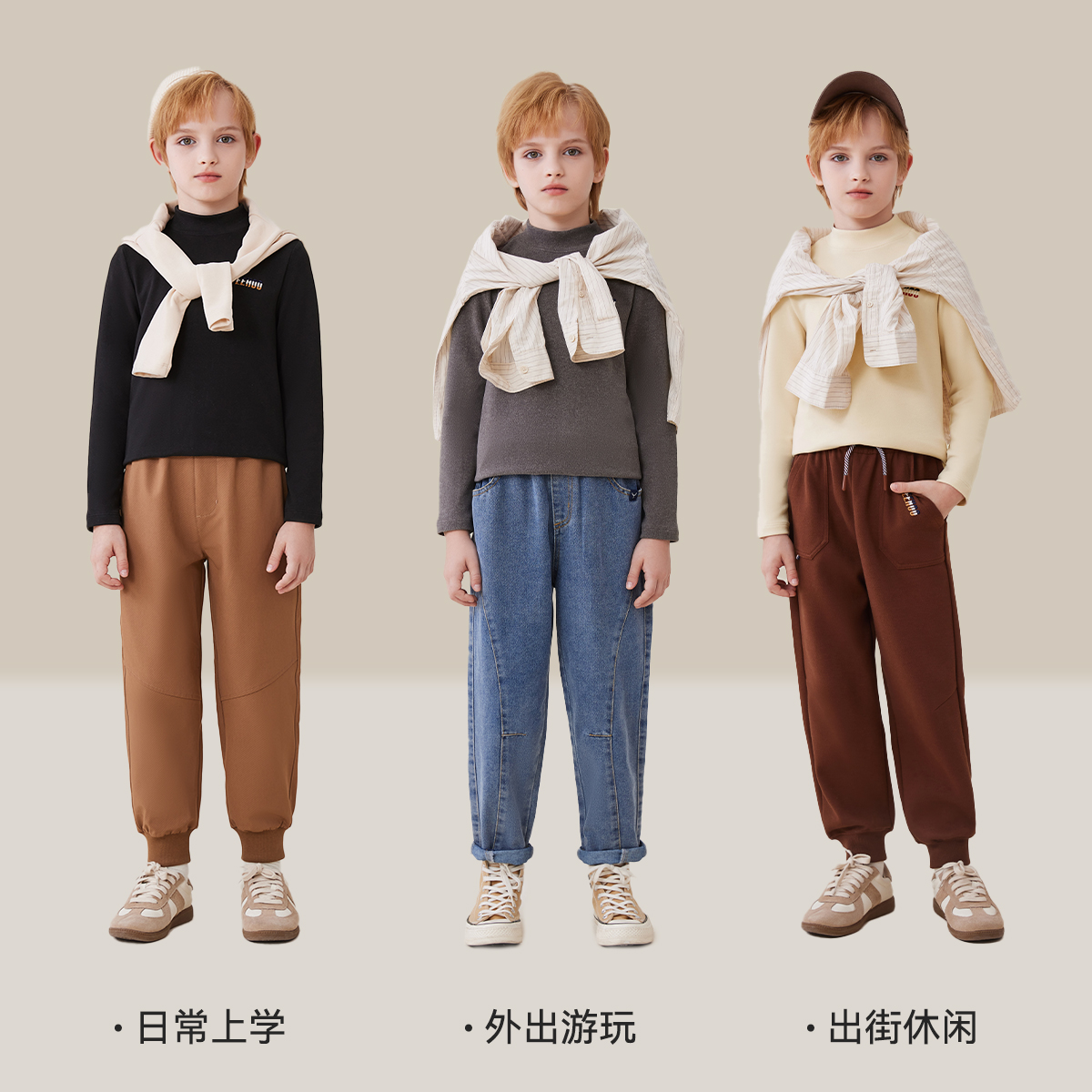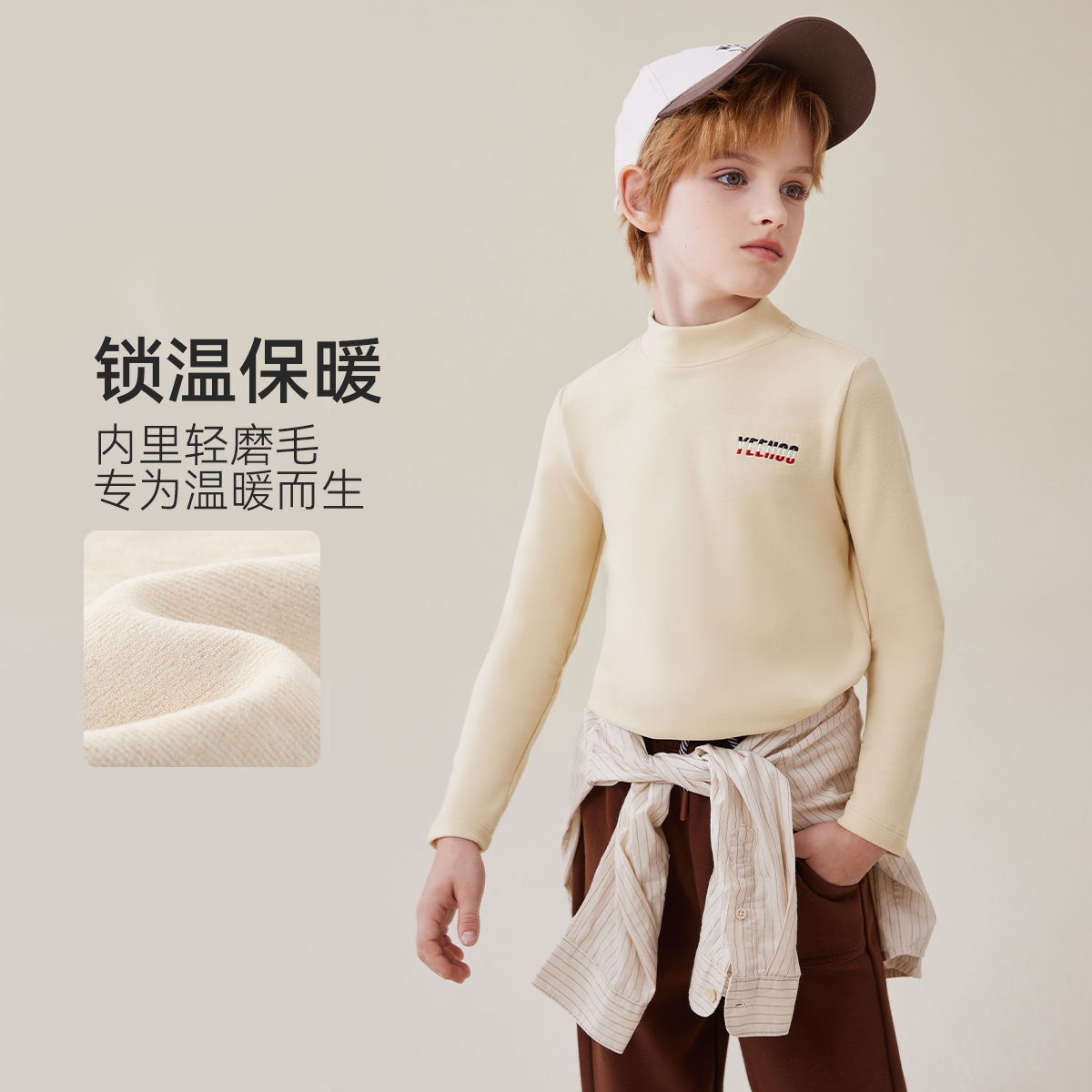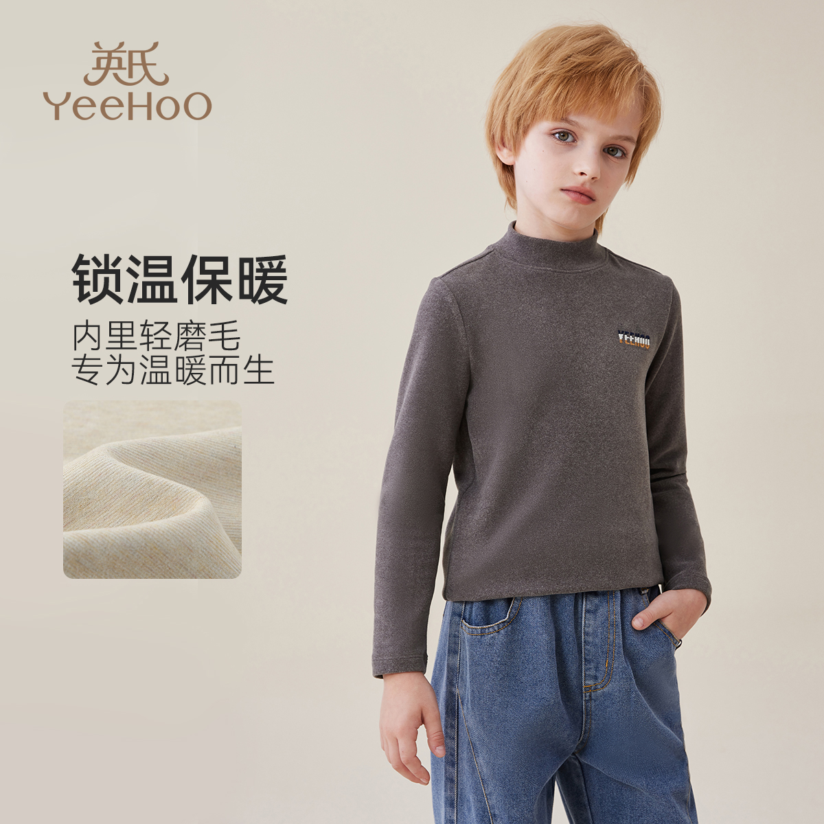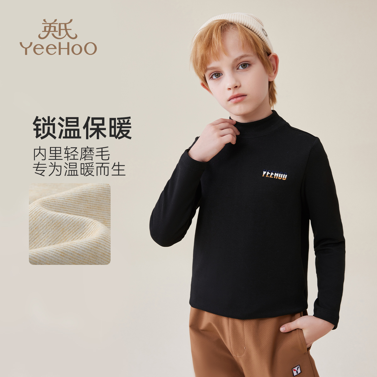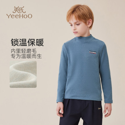 英氏儿童德绒保暖男童打底衫秋冬内搭秋衣半高领磨毛加厚t恤冬季