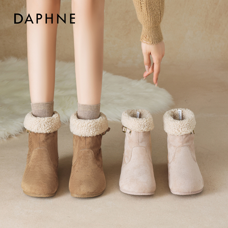 达芙妮加绒勃肯短靴女2025新款秋冬加厚羊羔绒雪地靴两穿复古棉鞋