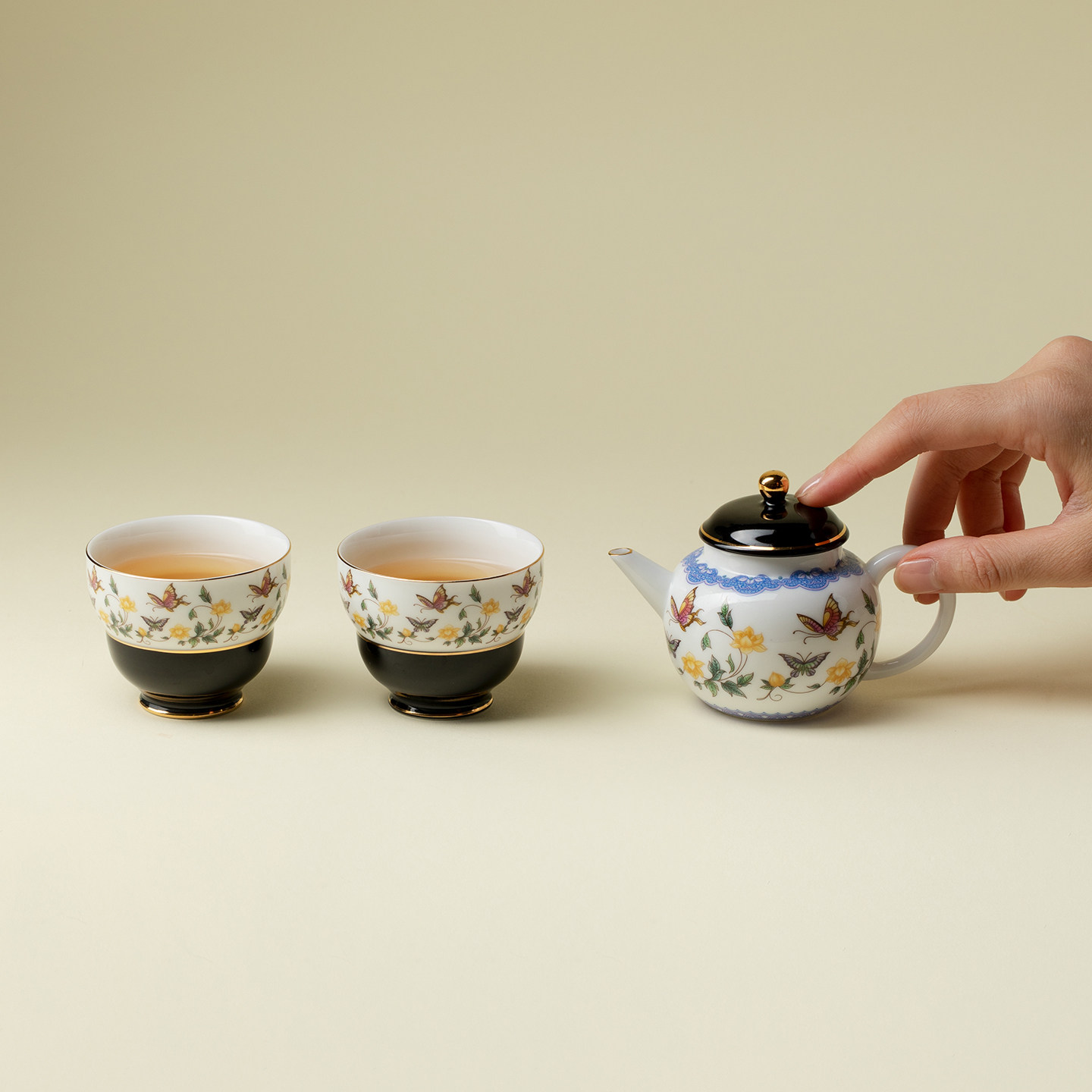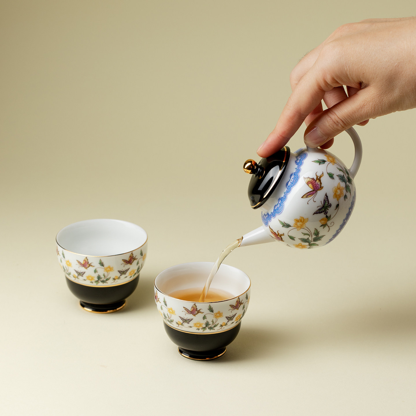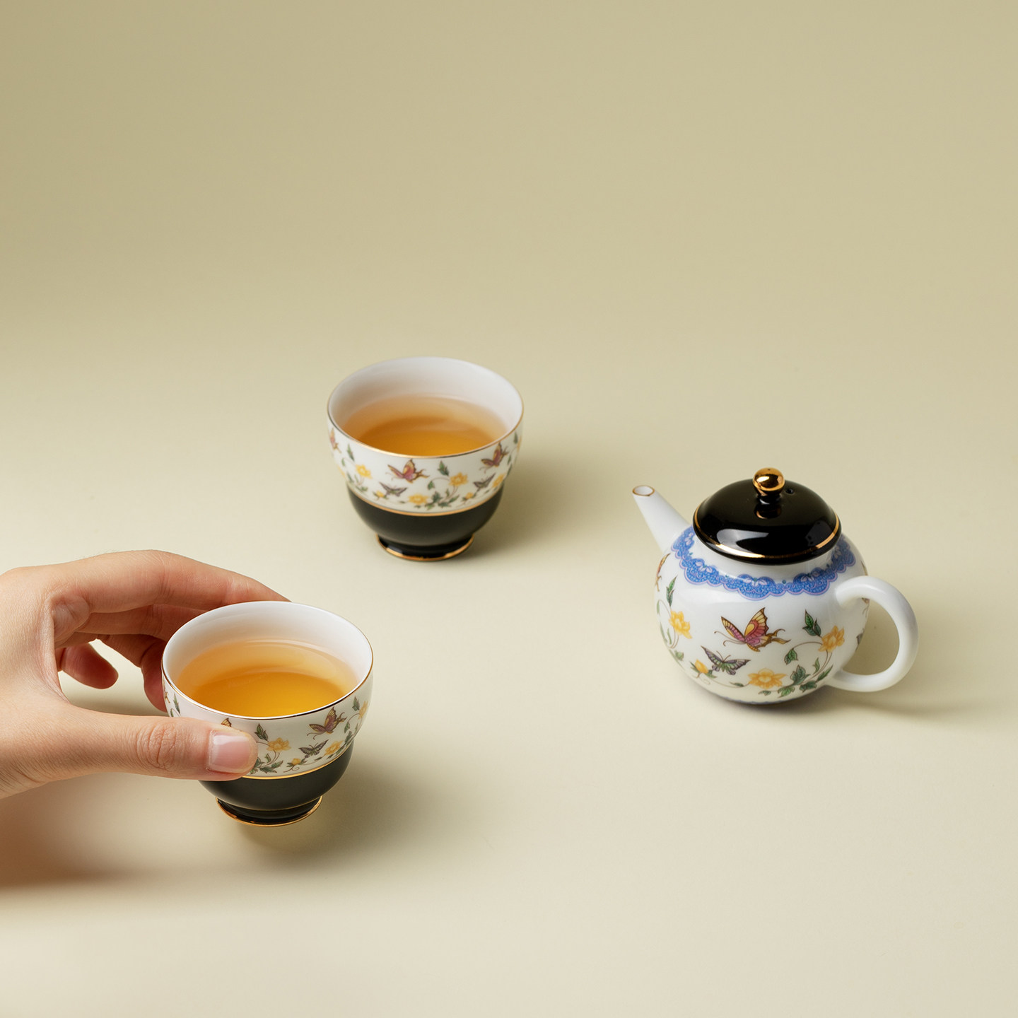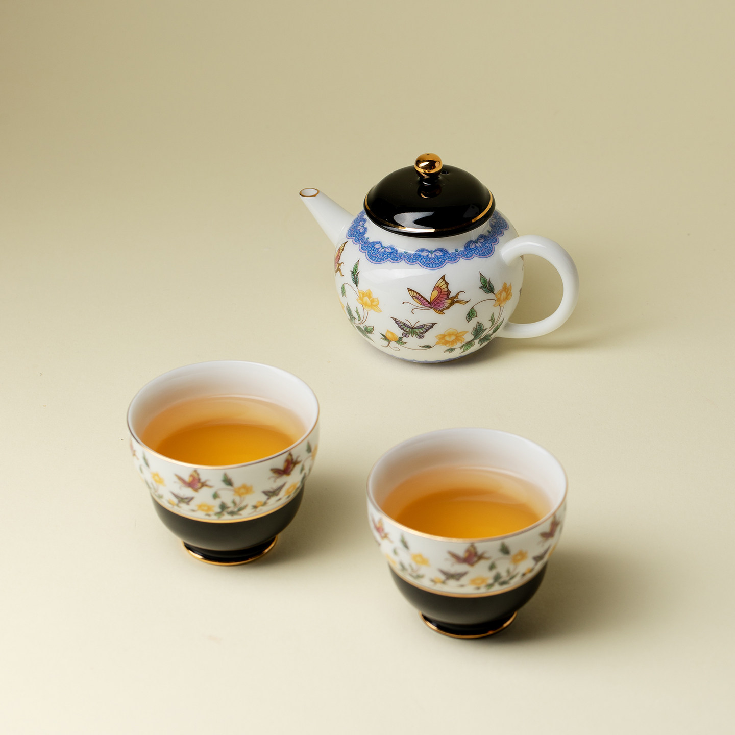 里作 金缘蝶绘高端陶瓷一壶两杯小套装高端创意手工茶壶茶杯礼盒