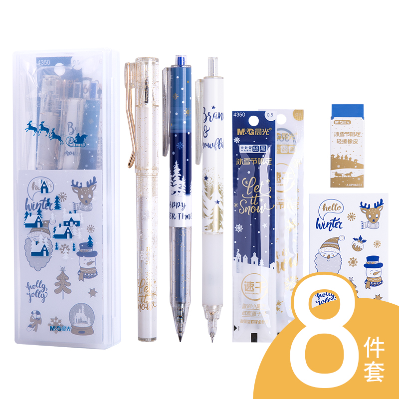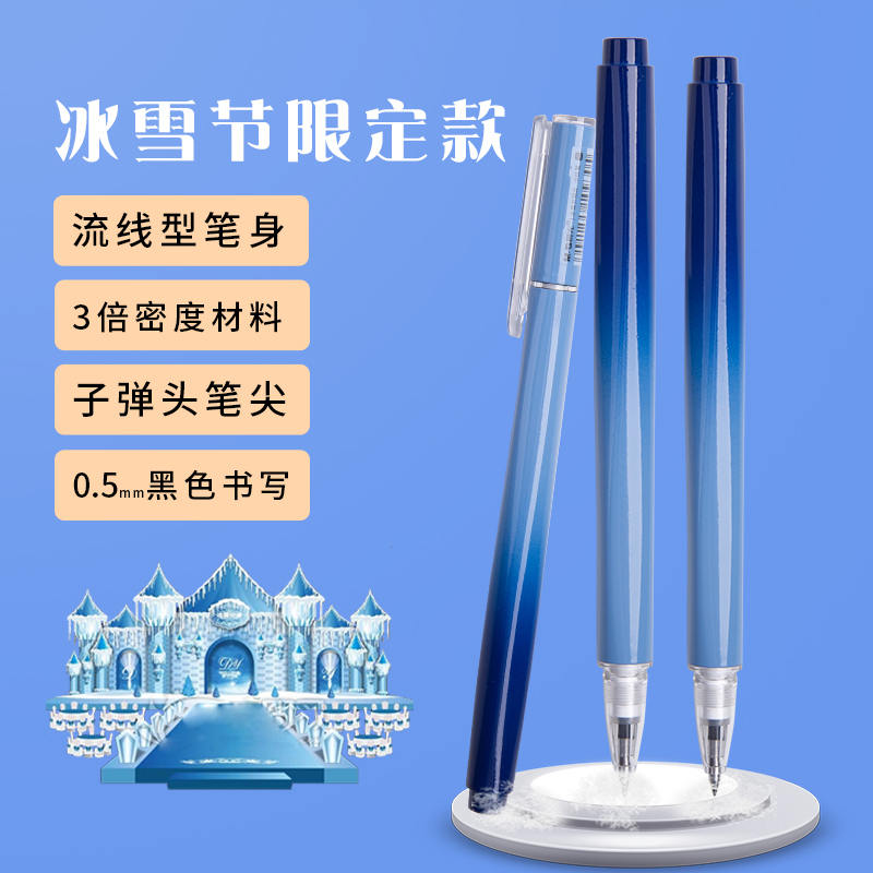 晨光冰雪节限定中性笔芯学生用黑色优品高密度中性笔拔帽0.5mm子弹头考试签字笔办公笔办公仿金属签字笔水笔