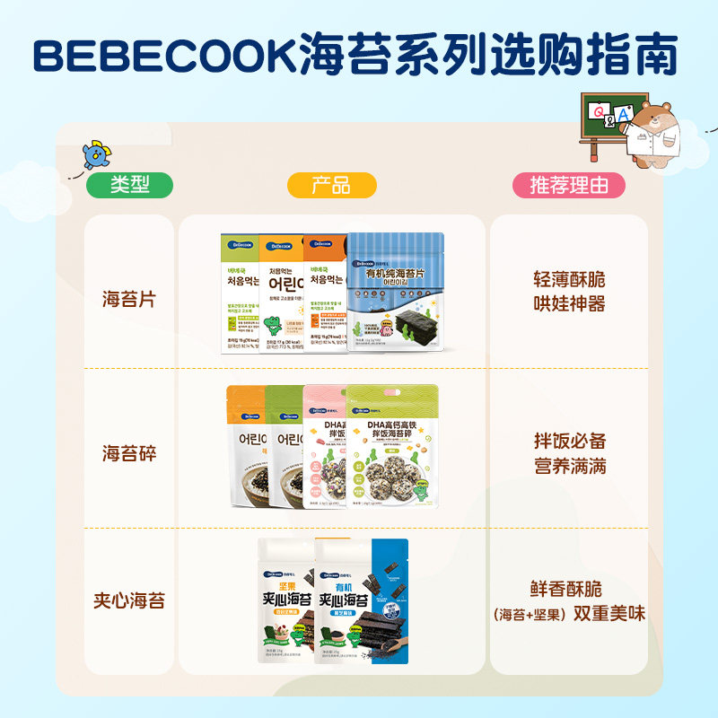 BEBECOOK百蓓可儿紫菜海苔脆儿童零食紫菜片夹心海苔片