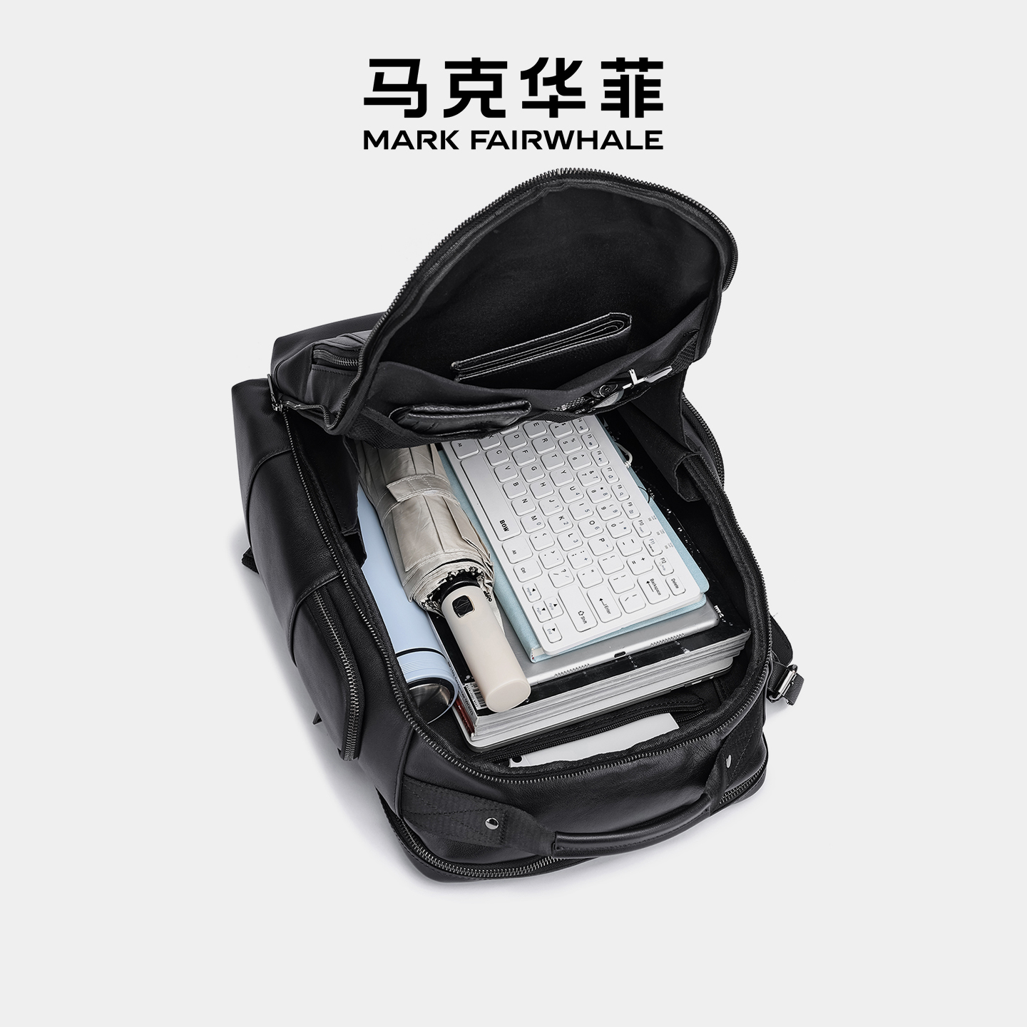 Mark Fairwhale/马克华菲复古大容量通勤牛皮男士旅行出差双肩包