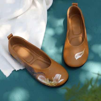 真皮平底鞋复古浅口圆头日系软底单鞋春季新品牛皮马面裙女鞋国风