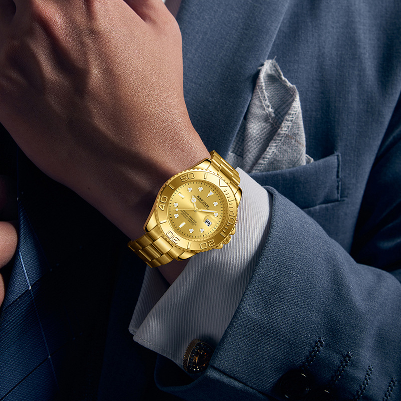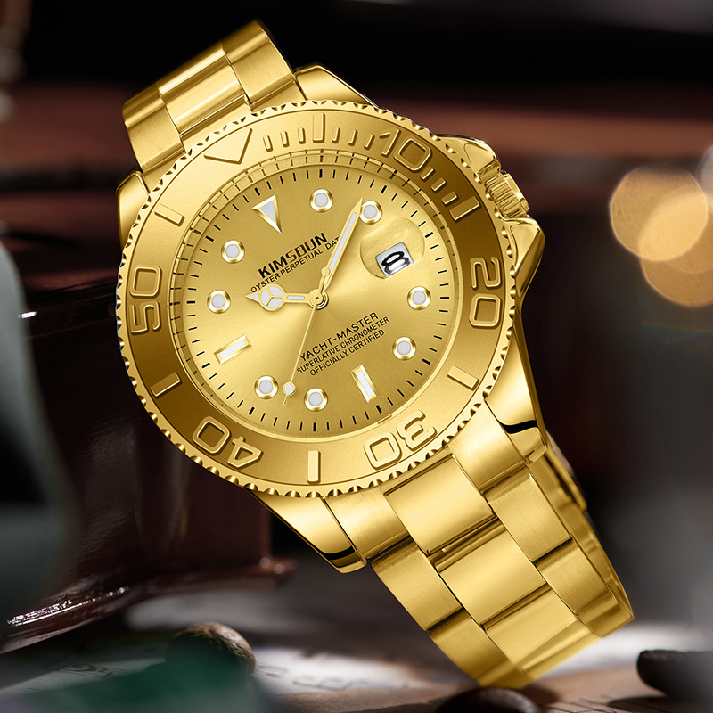 新款金游艇直播爆款士手表钢带日历镂空透底石英表假机械金表