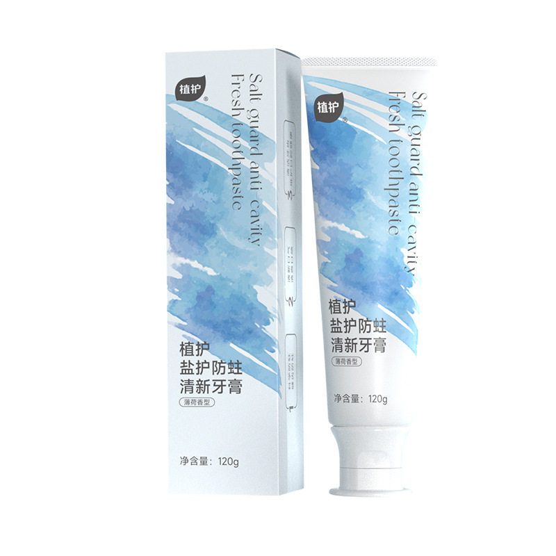 植护盐护防蛀清新牙膏120g男女去口气亮白薄荷香型口腔清洁实惠装