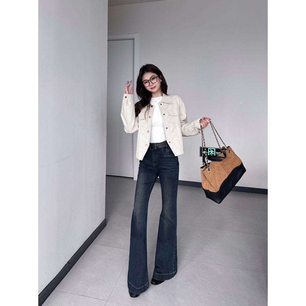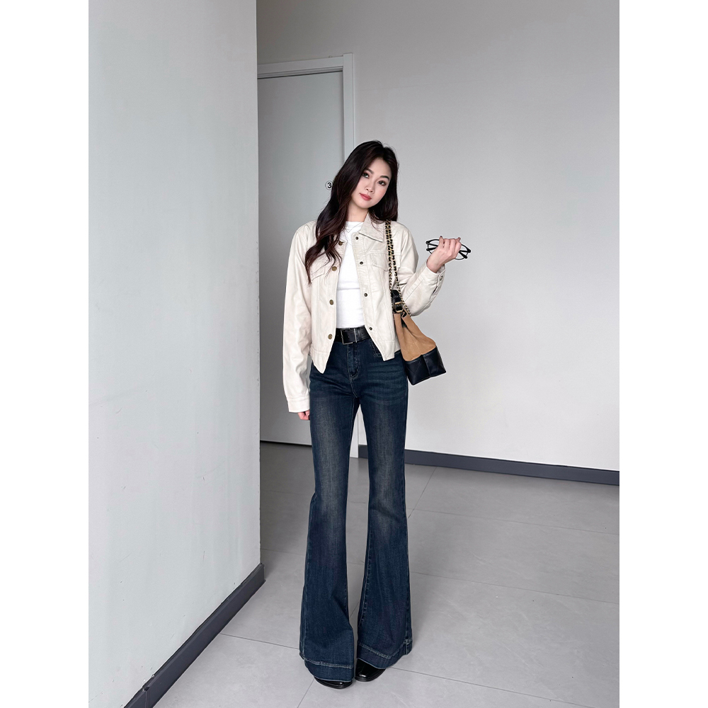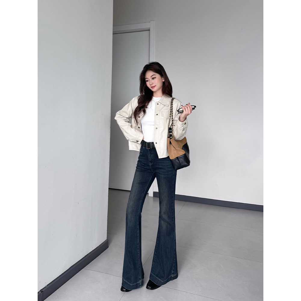 王家有鱼百搭时尚微喇裤2025秋季新款复古深蓝修身显瘦牛仔裤子女
