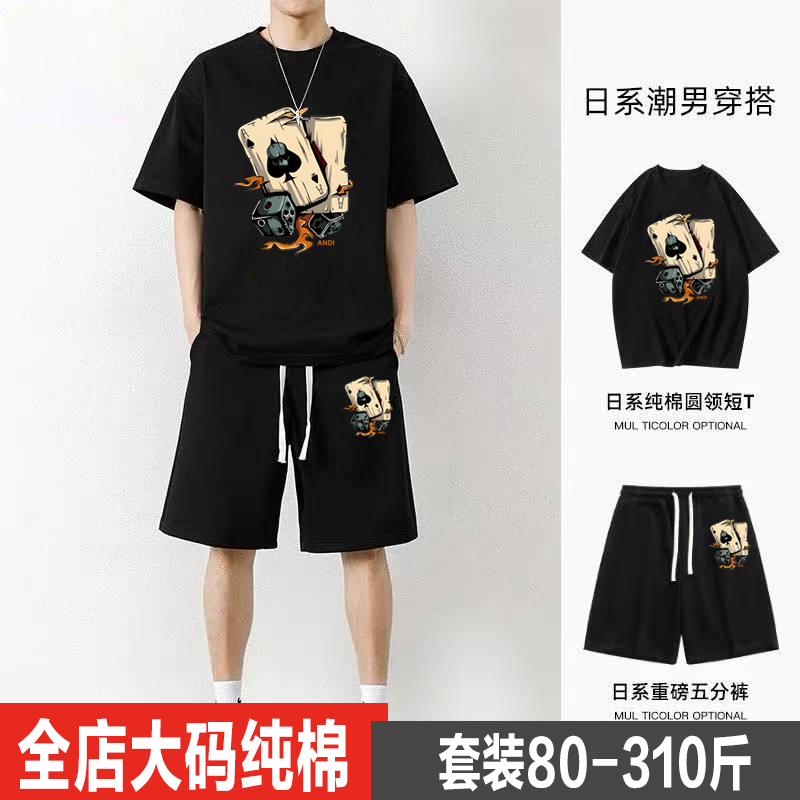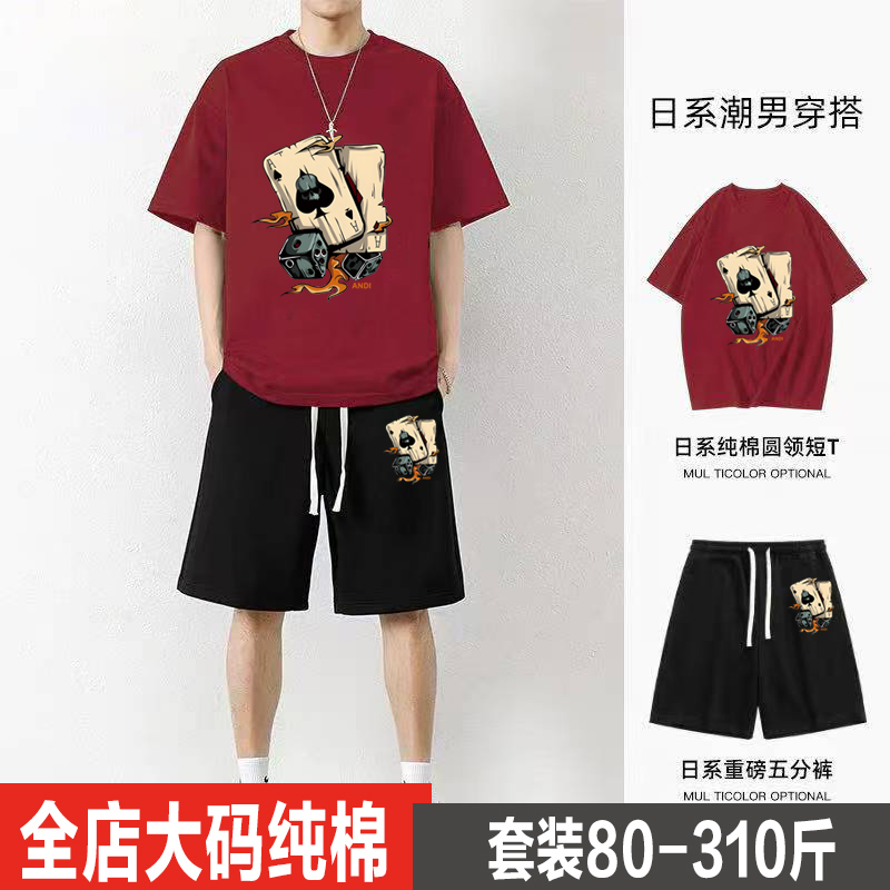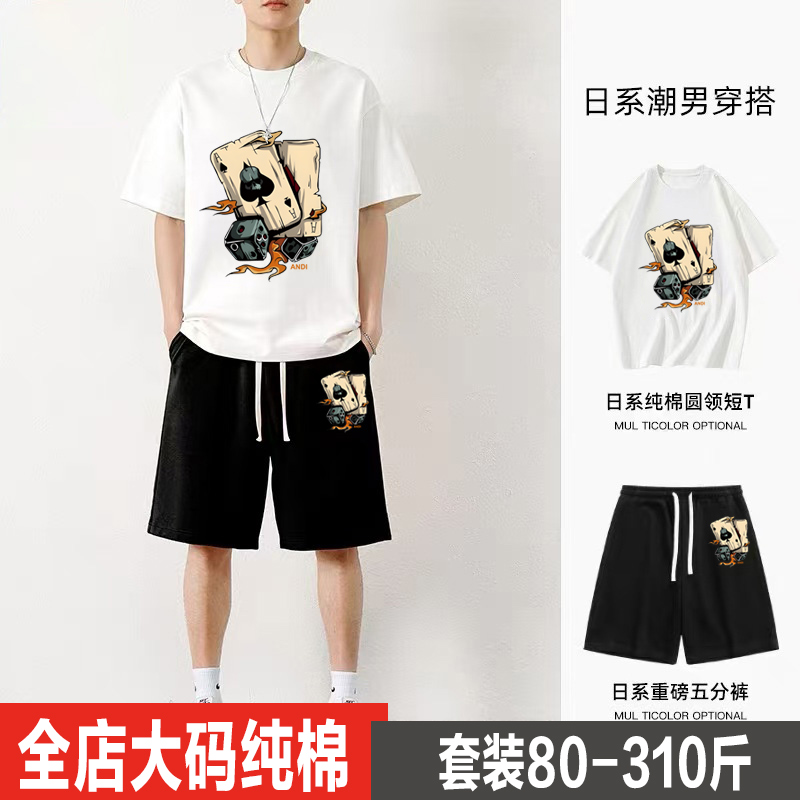 300斤大码纯棉短袖短裤套装男透气t恤男青少年休闲运动两件套衣服