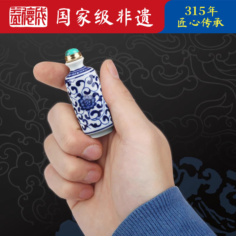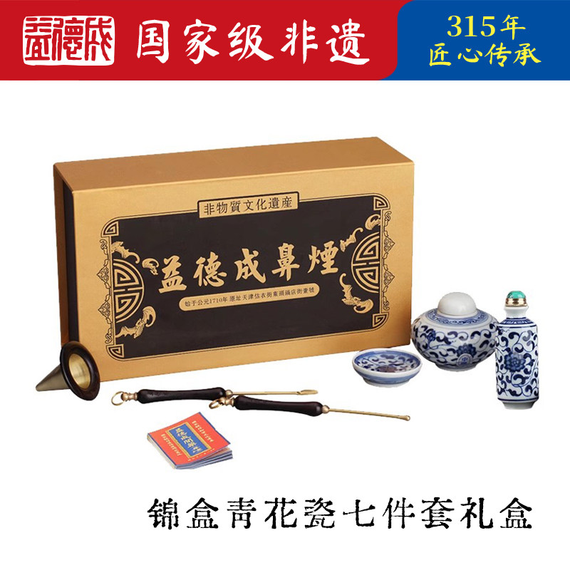 益德成天津鼻烟闻药青花陶瓷鼻烟壶套装手工艺品礼盒高端商务礼品