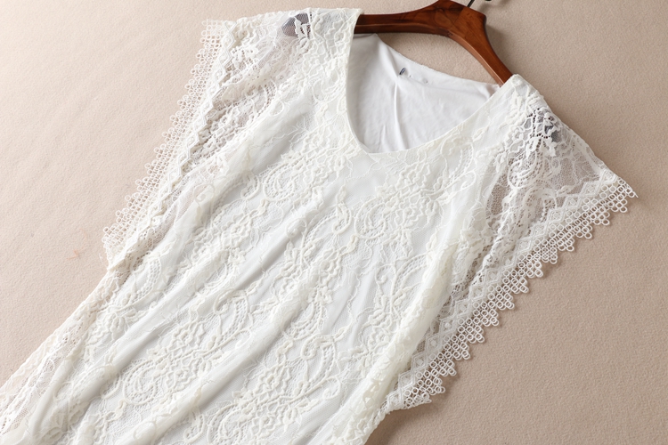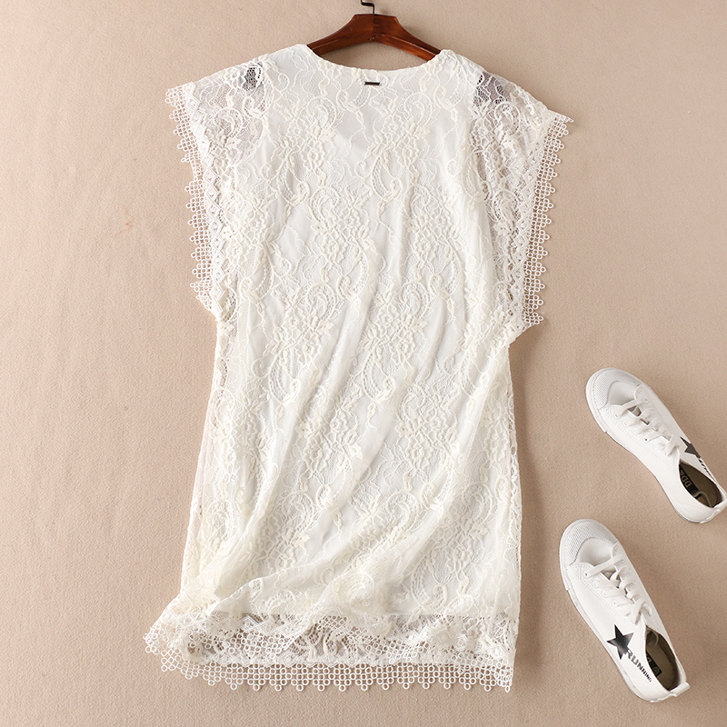 外贸~浪漫法式优雅 夏镂空蝙蝠袖蕾丝连衣裙女修身显瘦裙子 WD538
