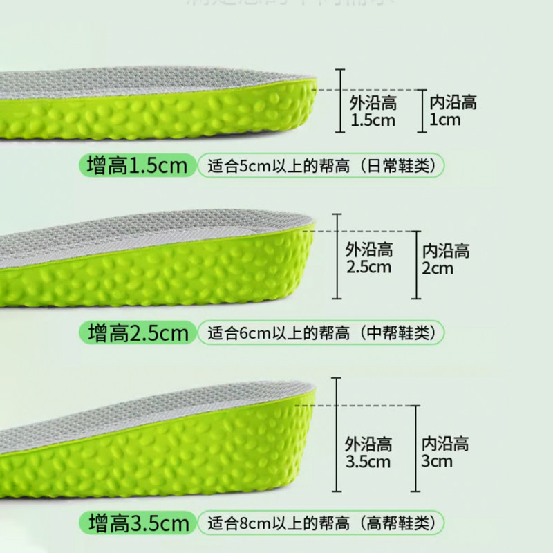 内增高鞋垫男女款吸汗防臭透气除臭增高鞋垫不累脚隐形软底不塌陷