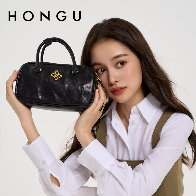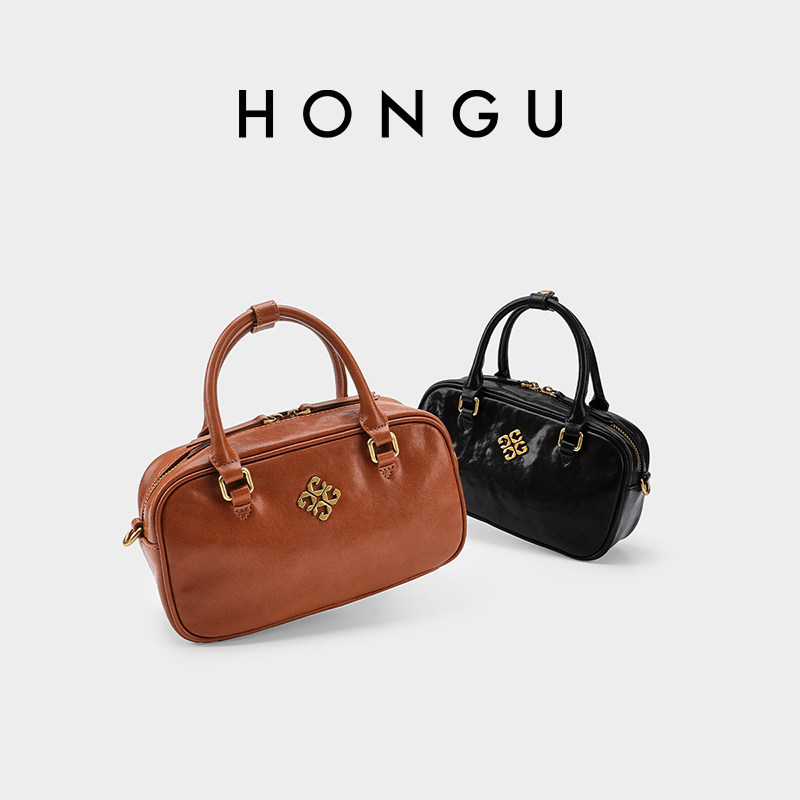 红谷女包高级感小众波士顿包软皮枕头包单肩手提包