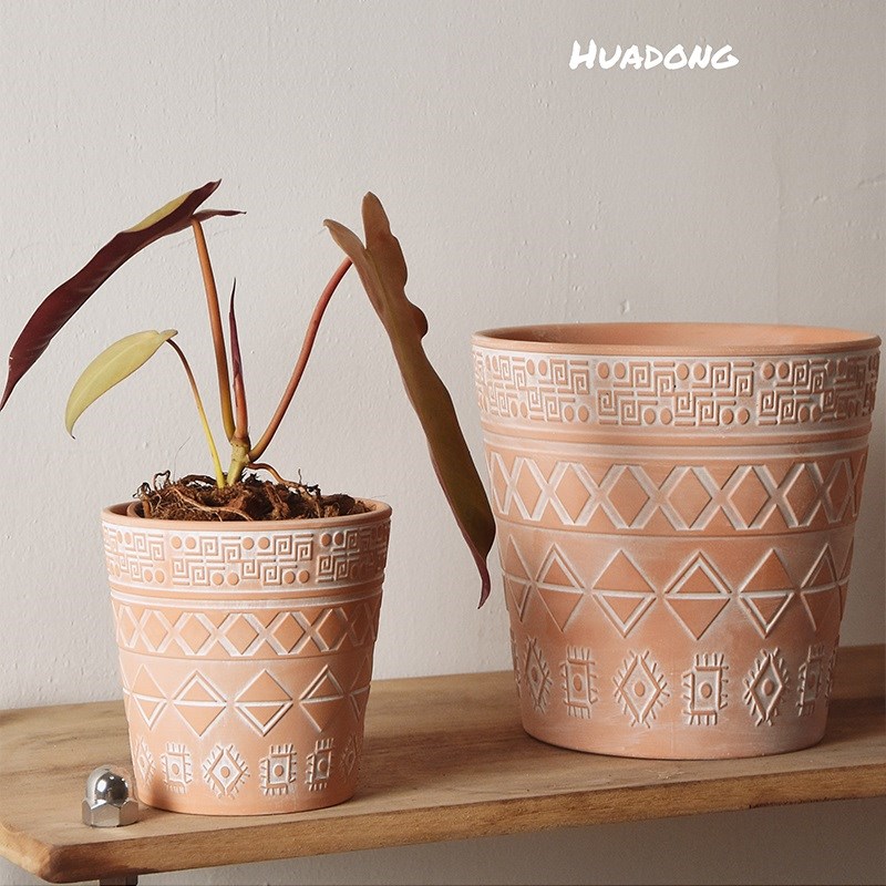 红陶花盆送陶土托盘吸水透气不烂根浮雕陶土盆大号绿植多肉盆