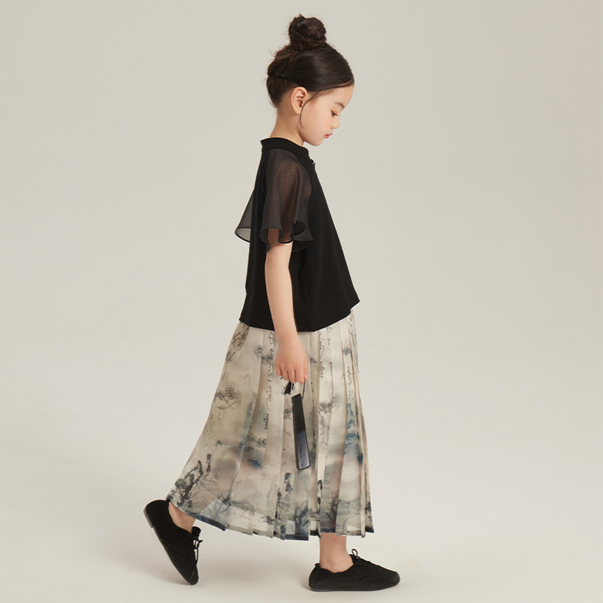 布丁哈鲁童装夏装女童2025夏季新款儿童新中式国风上衣裙子套装