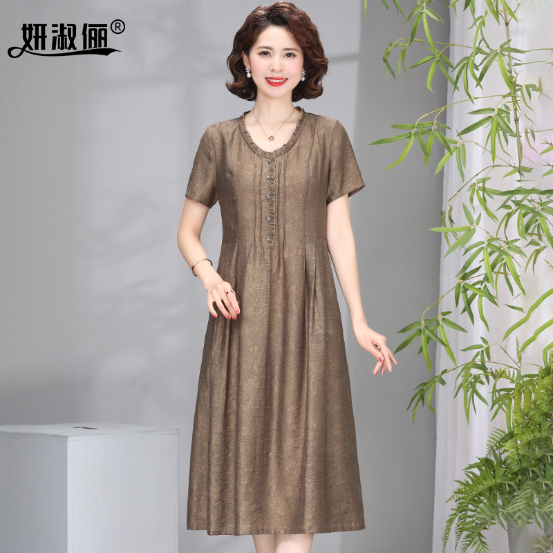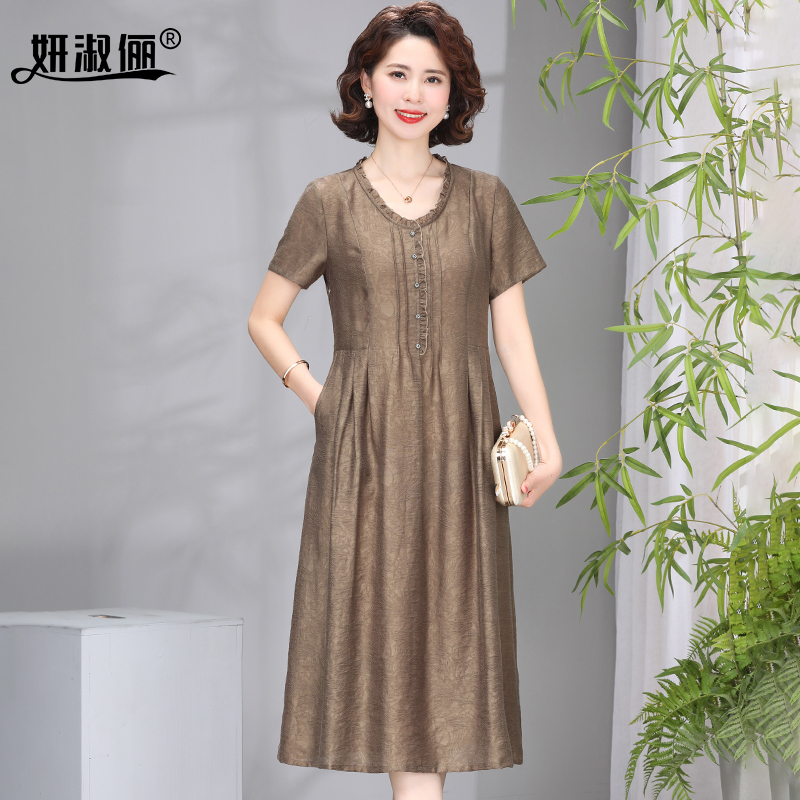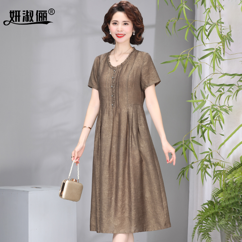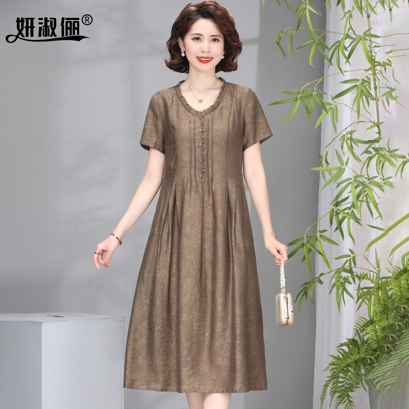 中老漂亮妈妈高端天丝亚麻连衣裙