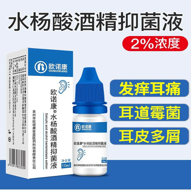 欧诺康 2%水杨酸酒精滴耳液耳道感染抑菌真菌耳朵痒油耳朵洗耳剂