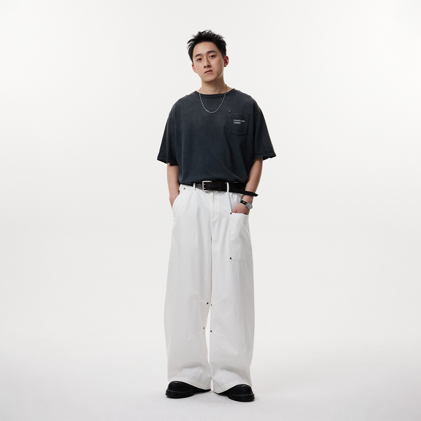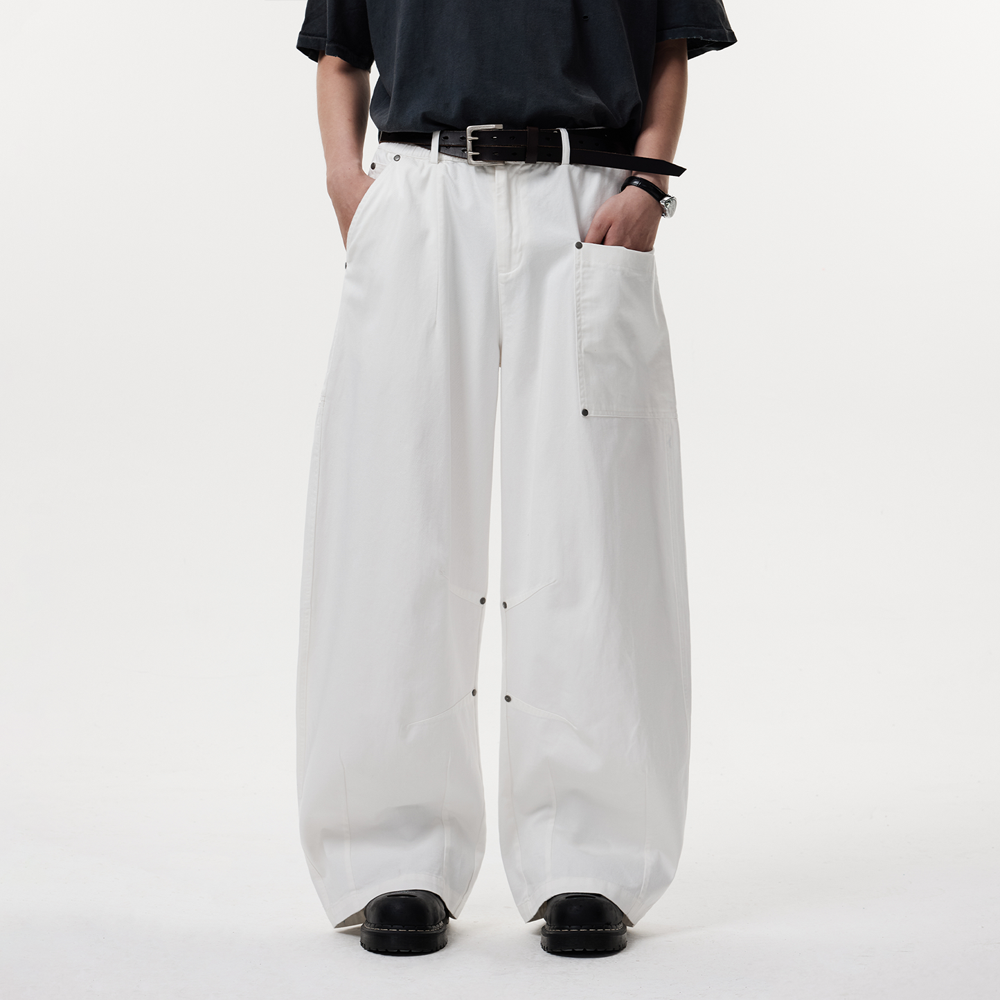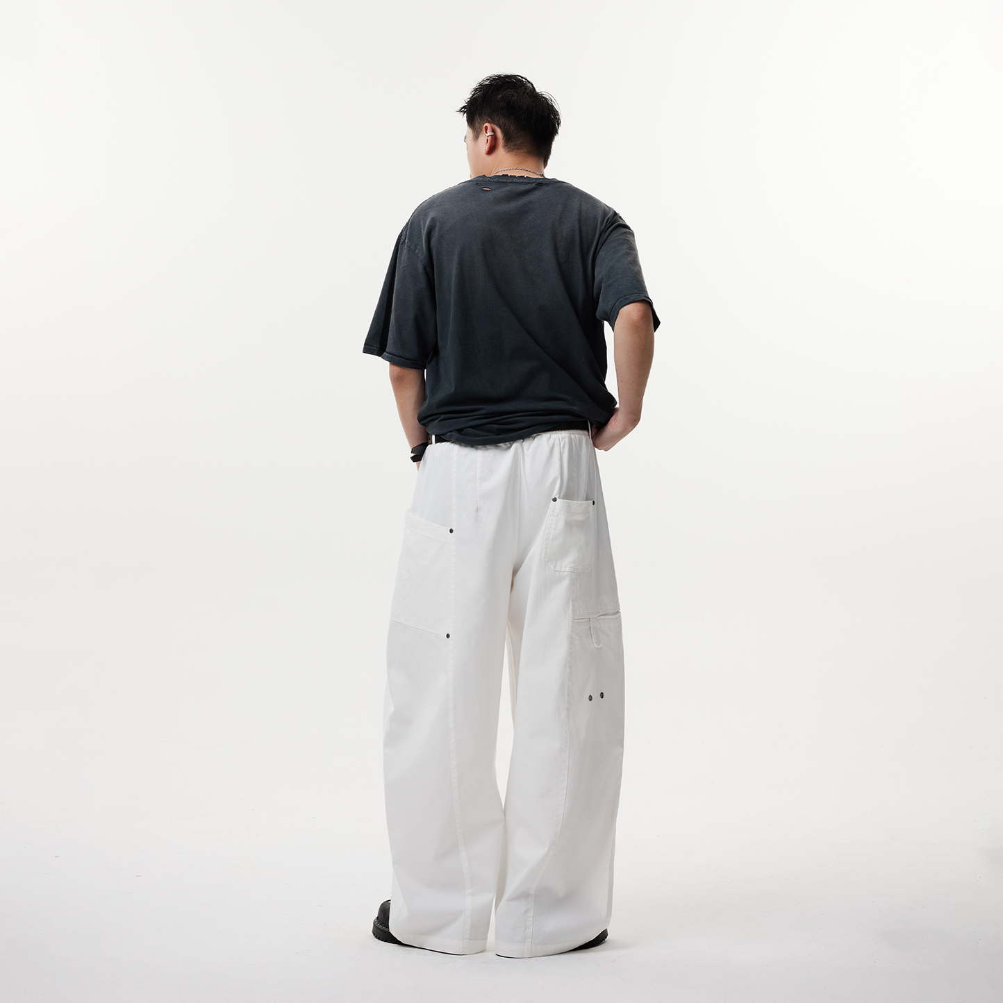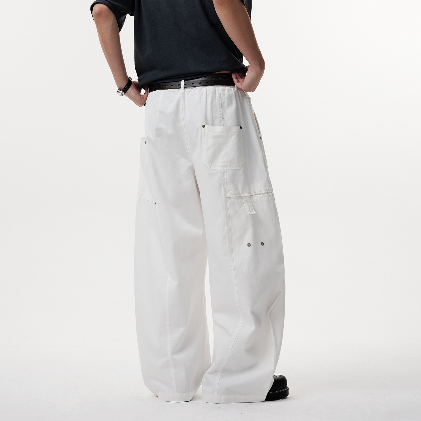 Botanica美式复古白色微弯刀工装裤多口袋高街vibe阔腿休闲镰刀裤