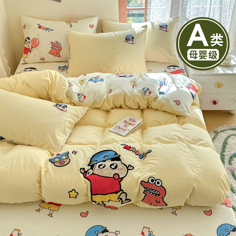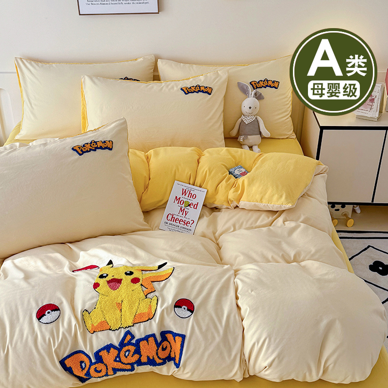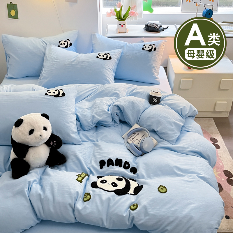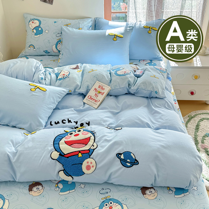 A类毛巾绣床品四件套全棉纯棉感儿童学生宿舍三件套床单被套床笠