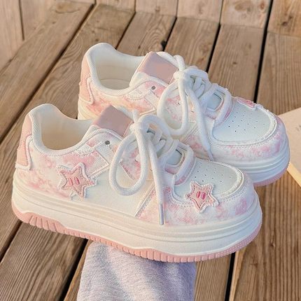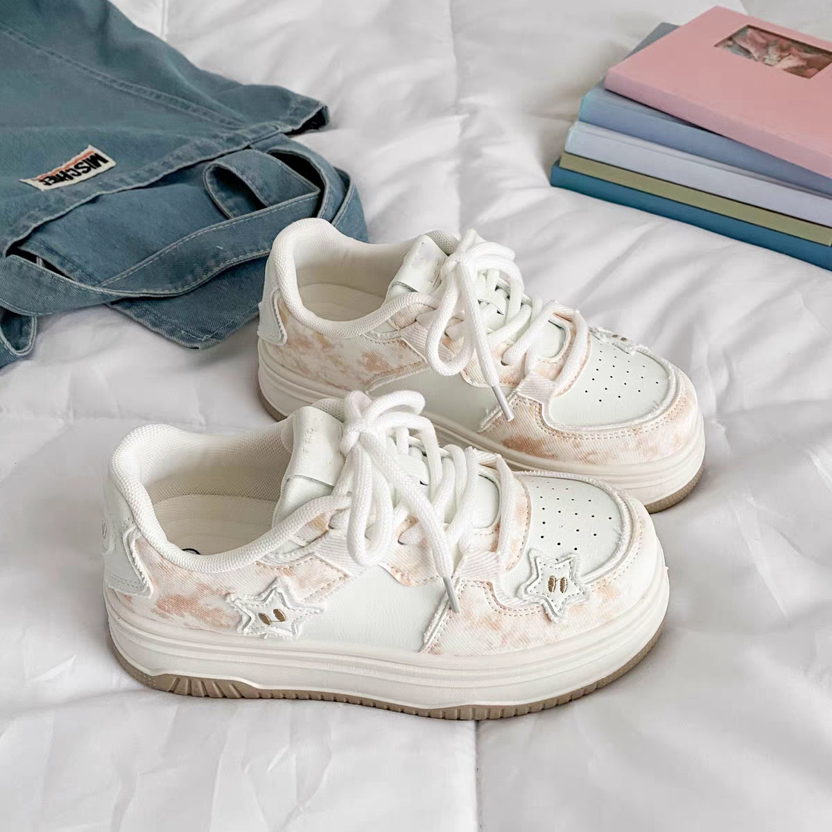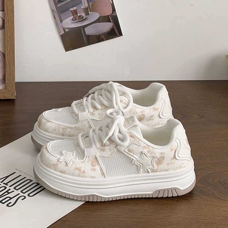 女童2025夏季新款休闲板鞋学生可爱百搭网面透气厚底运动小白鞋子