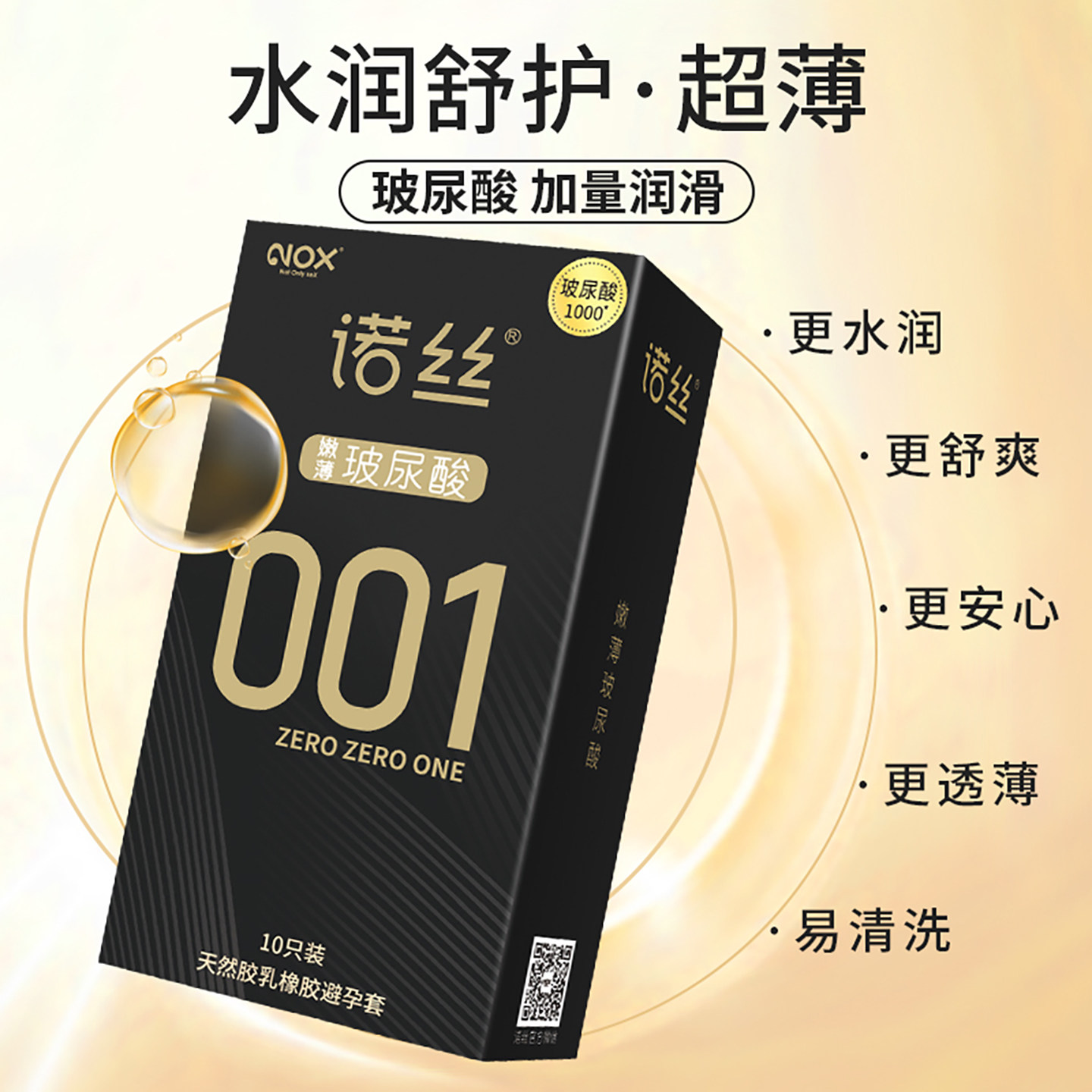 玻尿酸001超薄NOX诺丝0.01避孕套光面无香型原色