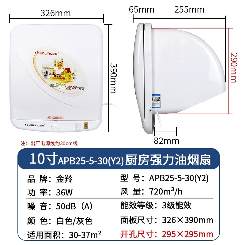 金羚排气扇10寸方形厨房家用强力机窗式静音APB25-5-30Y2抽油烟风