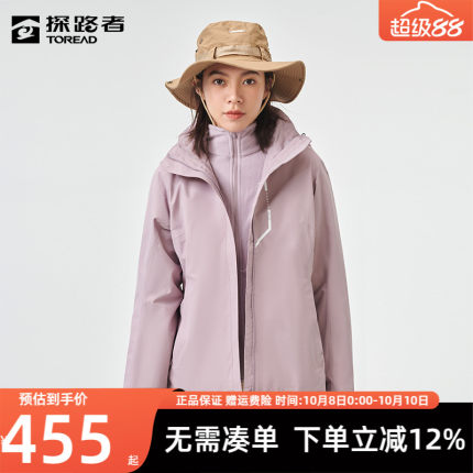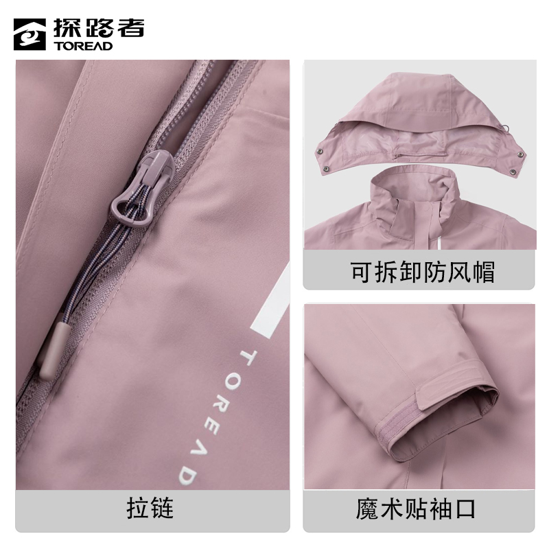 探路者冲锋衣女22冬新款户外防水保暖加绒可拆卸登山服外套女款