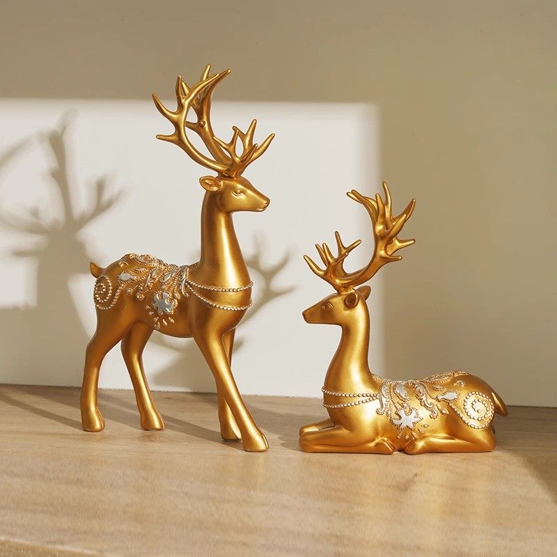 宏赫家居树脂梅花鹿摆件客厅电视柜酒柜装饰品工艺品乔迁新居礼品