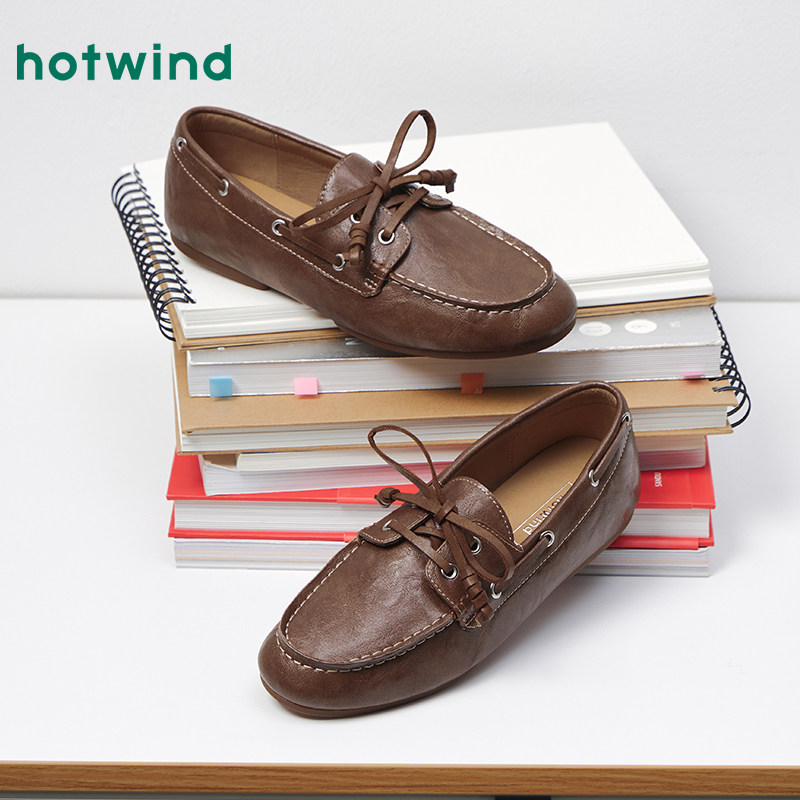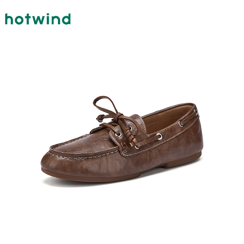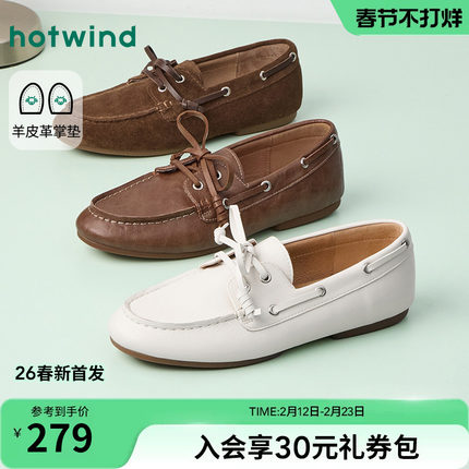 热风棕色乐福鞋女鞋26年春季新款浅口单鞋通勤平底鞋子H02W26112
