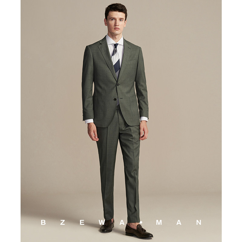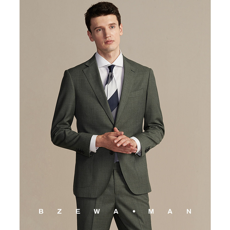 灰绿色意式男士西服ins时尚潮流