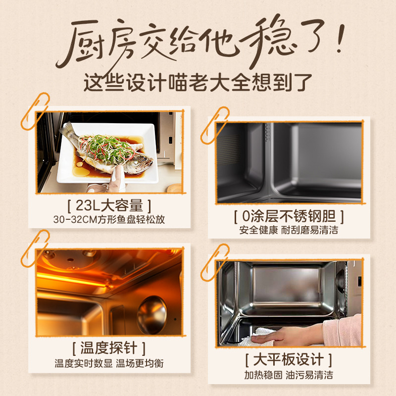 美的小滋味微波炉微烤炸一体家用不锈钢23L蒸烤箱新款猫爪F23G5