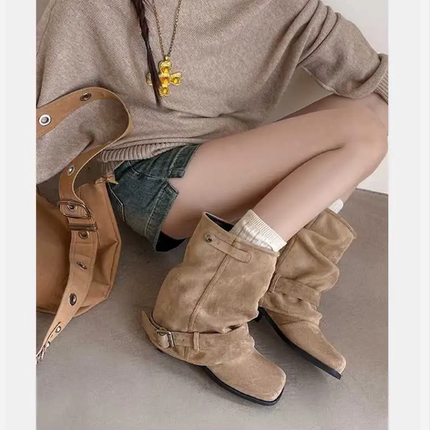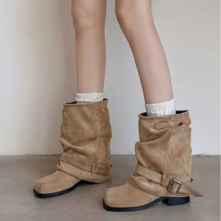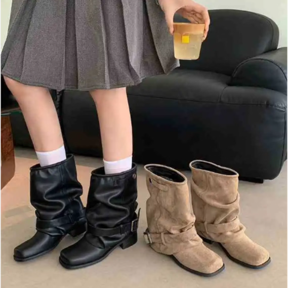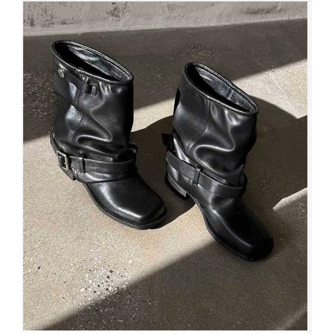甜辣玩家靴子2025秋新款圆头粗跟皮带扣短筒堆堆靴女炸街马丁短靴