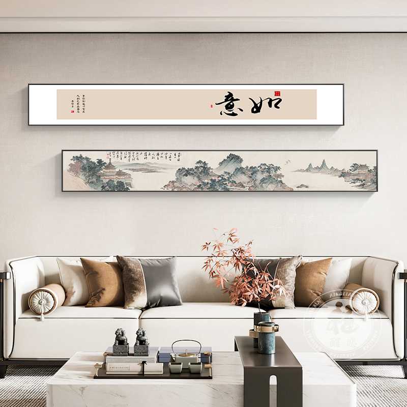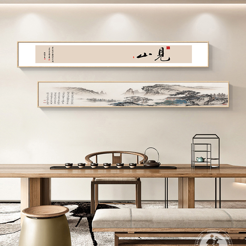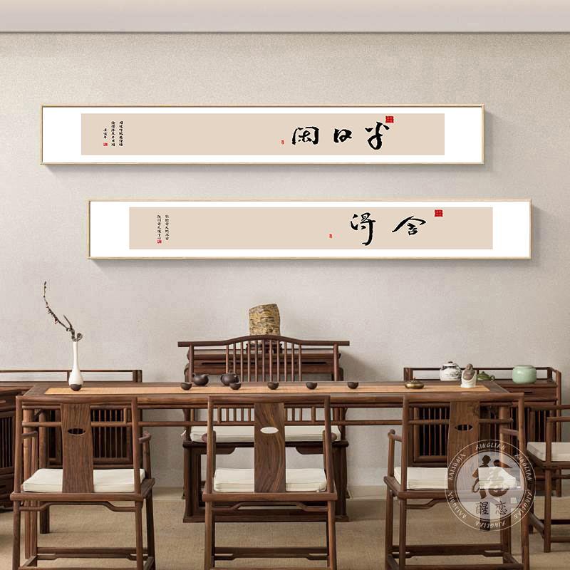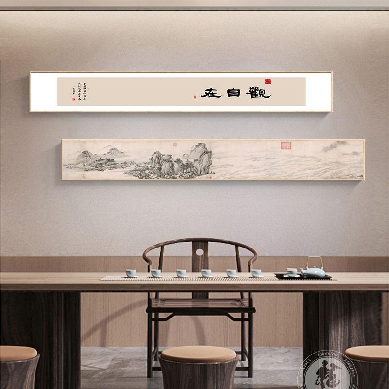 中式禅意茶室办公室书法挂画横版窄长条画客厅装饰画宋氏宋代美学
