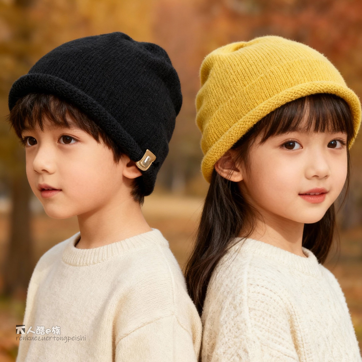 秋冬韩版儿童毛线帽时尚个性可调节针织堆堆帽柔软舒适护耳帽潮款