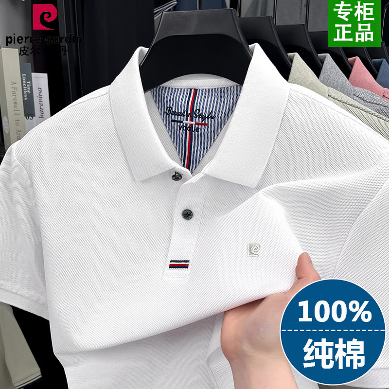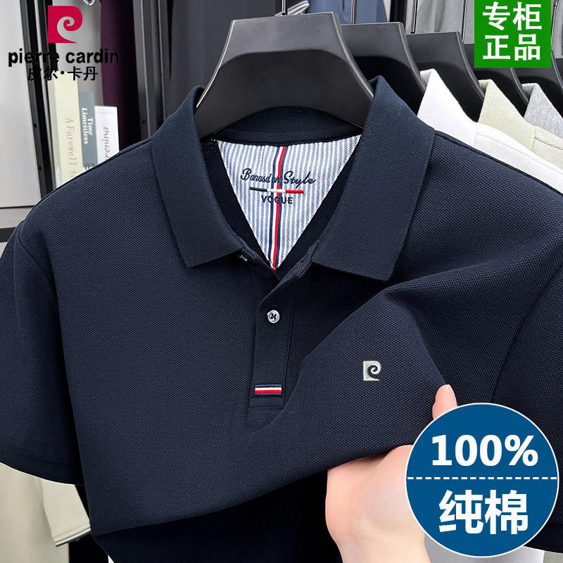 皮尔卡丹100%纯棉短袖T恤男2025夏季新款高端翻领半袖纯色Polo衫