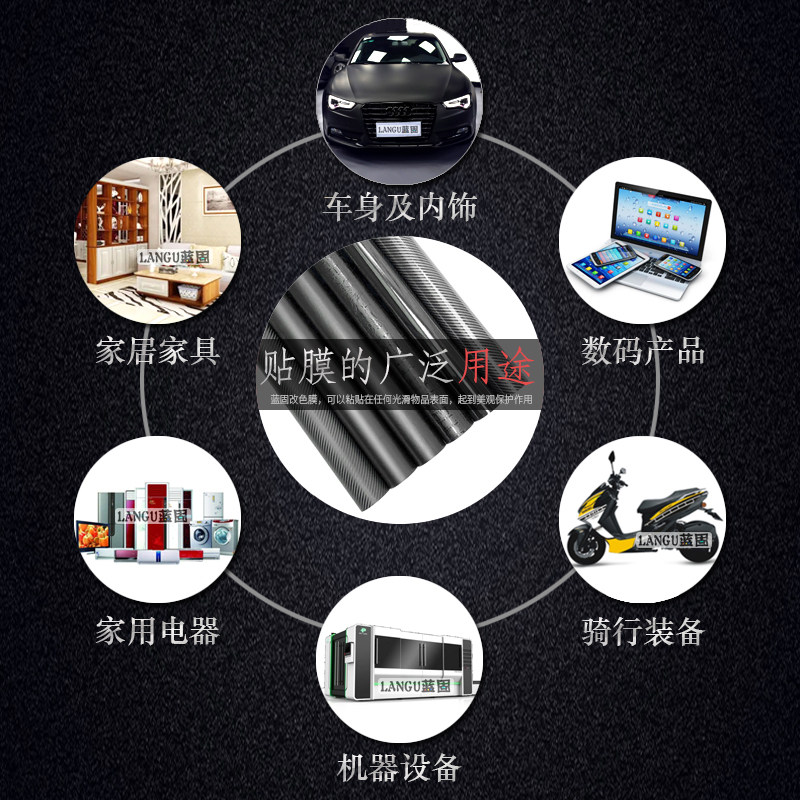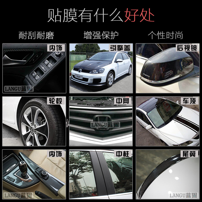 汽车改色膜碳纤维贴纸黑色贴膜内饰全车膜全车哑光亮光自贴车衣膜
