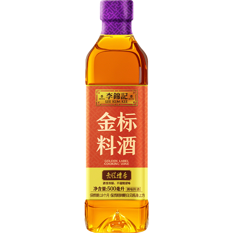 李锦记金标料酒500ml家用瓶装去腥增香厨房炒菜黄酒调味品