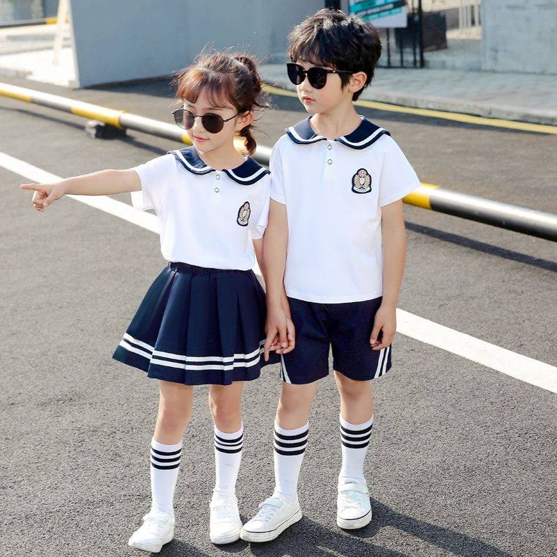 幼儿园园服夏装英伦学院风小学生校服夏季毕业照短袖纯棉儿童班服