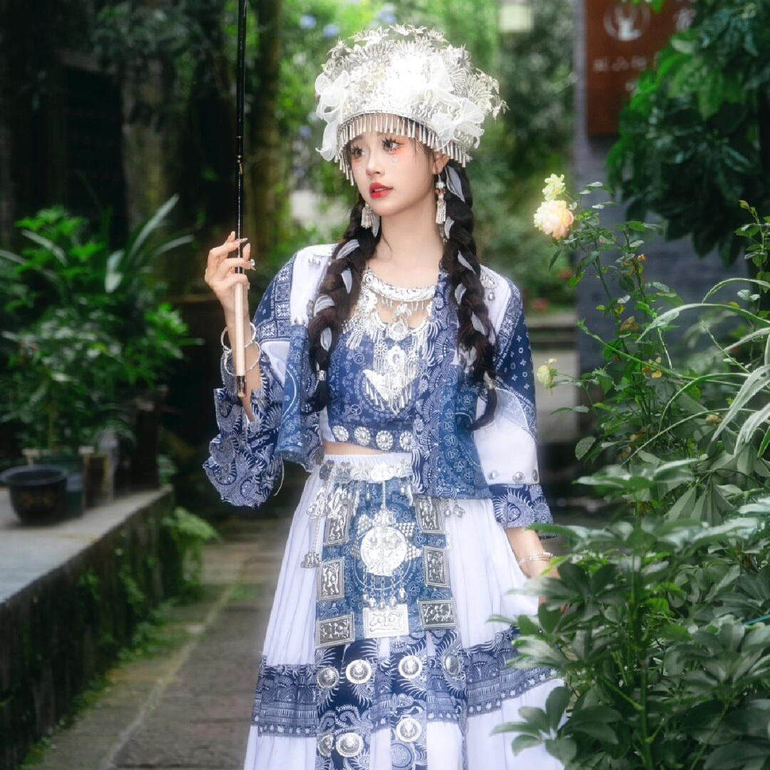 苗族服装苗疆少女蜡染套装旅拍抹胸少数民族舞台服饰民族风女装