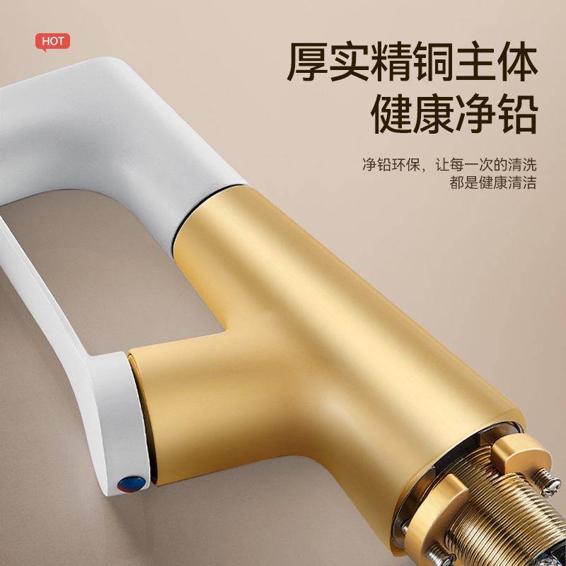 阳台洗衣池洗手盆水龙头冷热两用卫生间台盆洗脸盆白色抽拉式全铜
