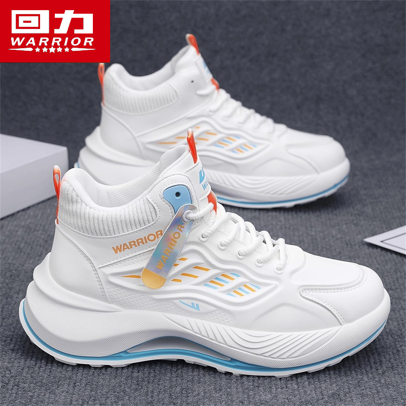 回力高帮男鞋秋季运动休闲青少年皮面跑步防滑篮球增高小白老爹鞋